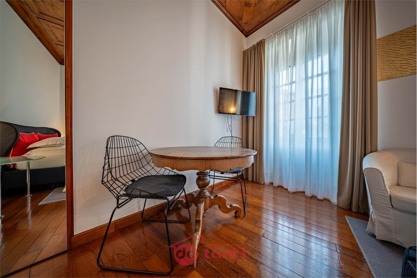 La zona principale è valorizzata da un soffitto a cassettoni in legno che incornicia l’ambiente con eleganza autentica, donando carattere e calore senza rinunciare alla linearità degli spazi; qui la zona notte trova la sua collocazione naturale, con dimensioni comode e una disposizione che consente di vivere l’ambiente con equilibrio. Il bagno, ampio ed elegante, con doccia in vetro e finiture curate, trasmette immediatamente una sensazione di qualità e solidità, elementi che contano quando si vuole una casa che non riservi sorprese. L’immobile viene locato completamente arredato, pronto per essere abitato senza ulteriori investimenti o tempi di attesa: entri e vivi.