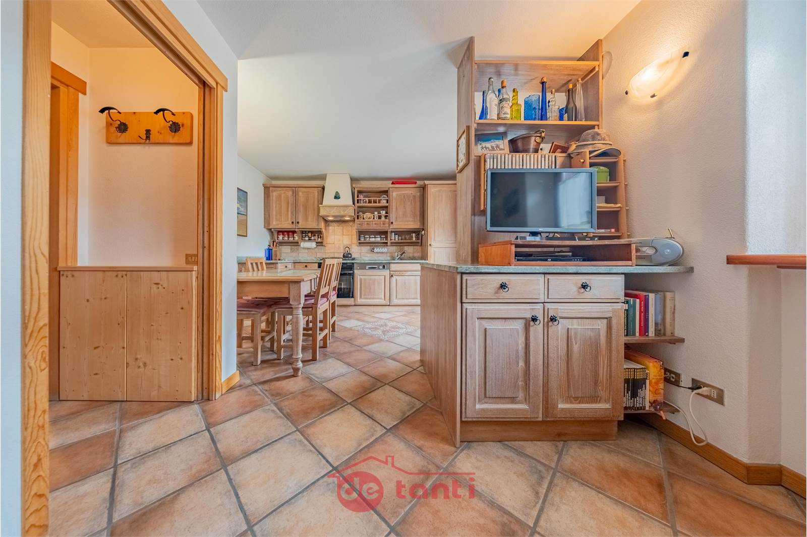 Con ingresso indipendente, questa soluzione ti accoglie in un’atmosfera dove la modernità incontra il calore tipico della montagna, svelando una zona giorno luminosa e curata in ogni dettaglio con un divano su misura pensato per il massimo relax.