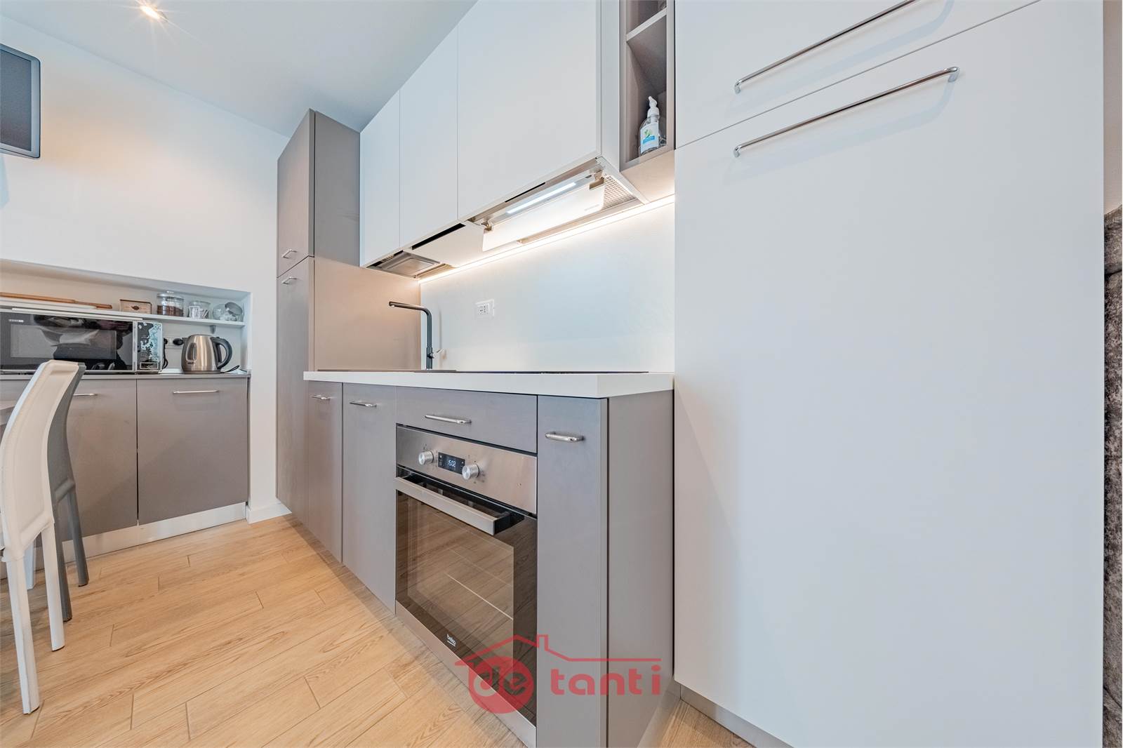 La zona giorno è luminosa, ordinata, con una cucina moderna che dialoga in modo naturale con il soggiorno e il tavolo da pranzo. È uno spazio che accompagna le giornate senza imporsi, perfetto per chi rientra dal lavoro e vuole rilassarsi, ma anche per chi cerca una casa che “si gestisce da sola”, senza continue attenzioni o manutenzioni.