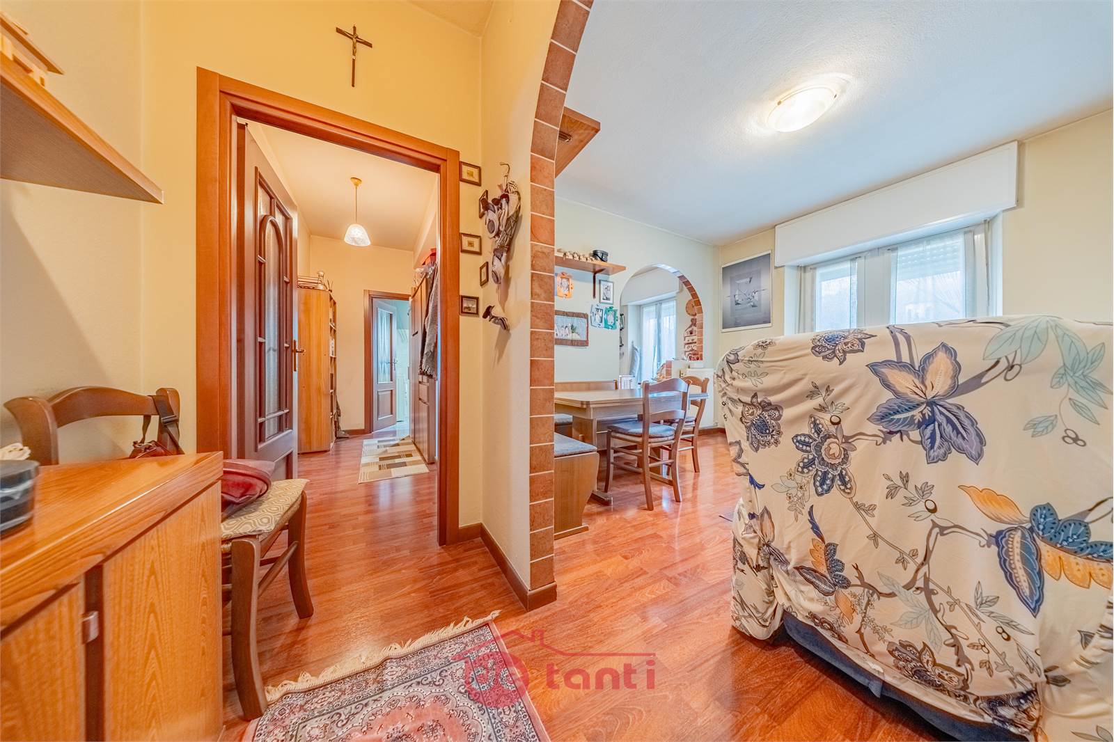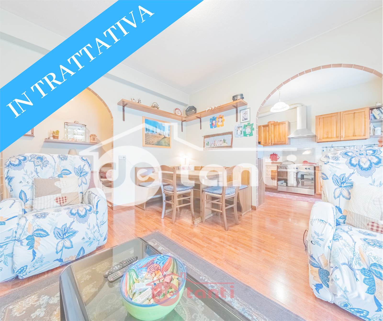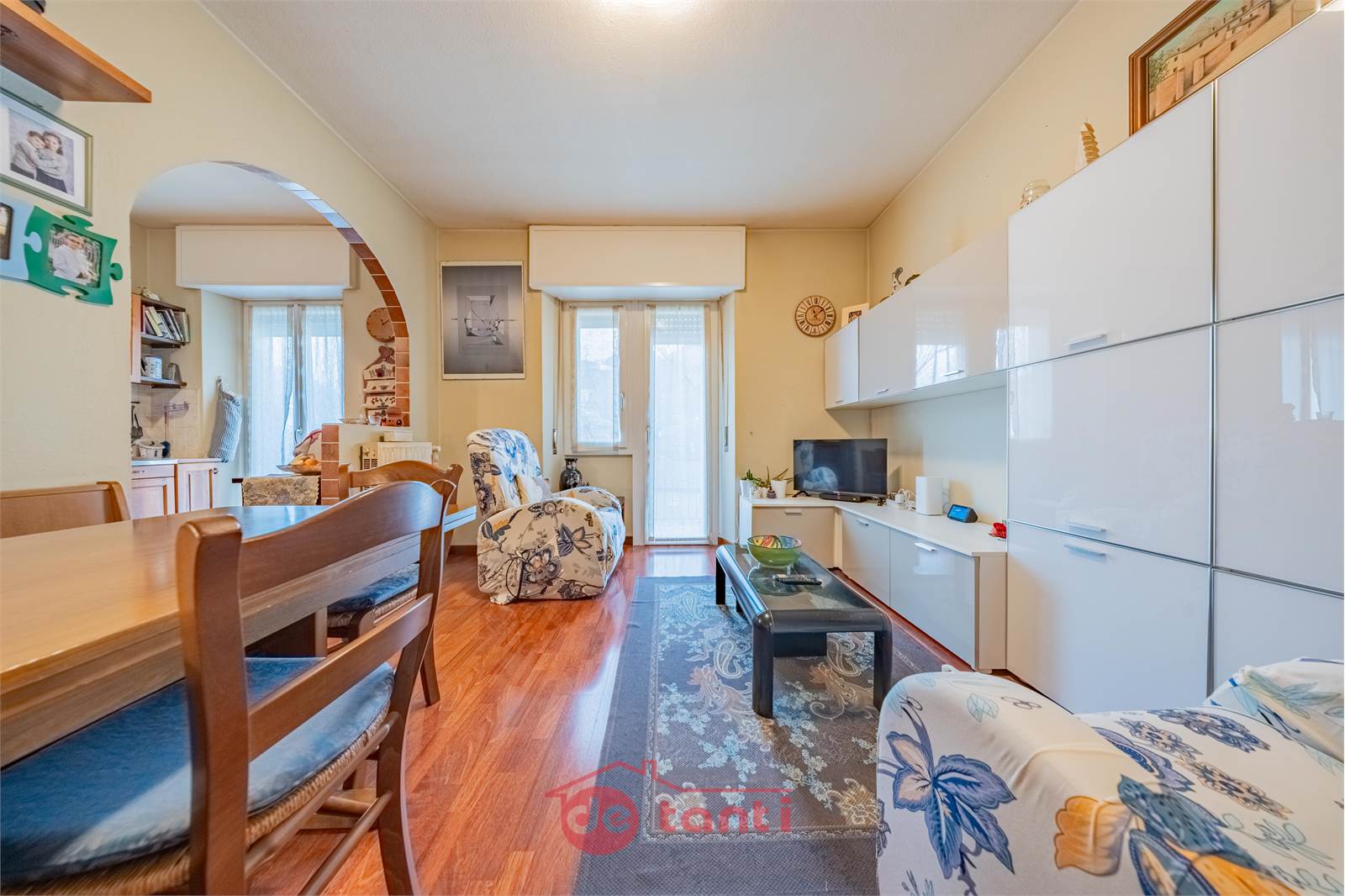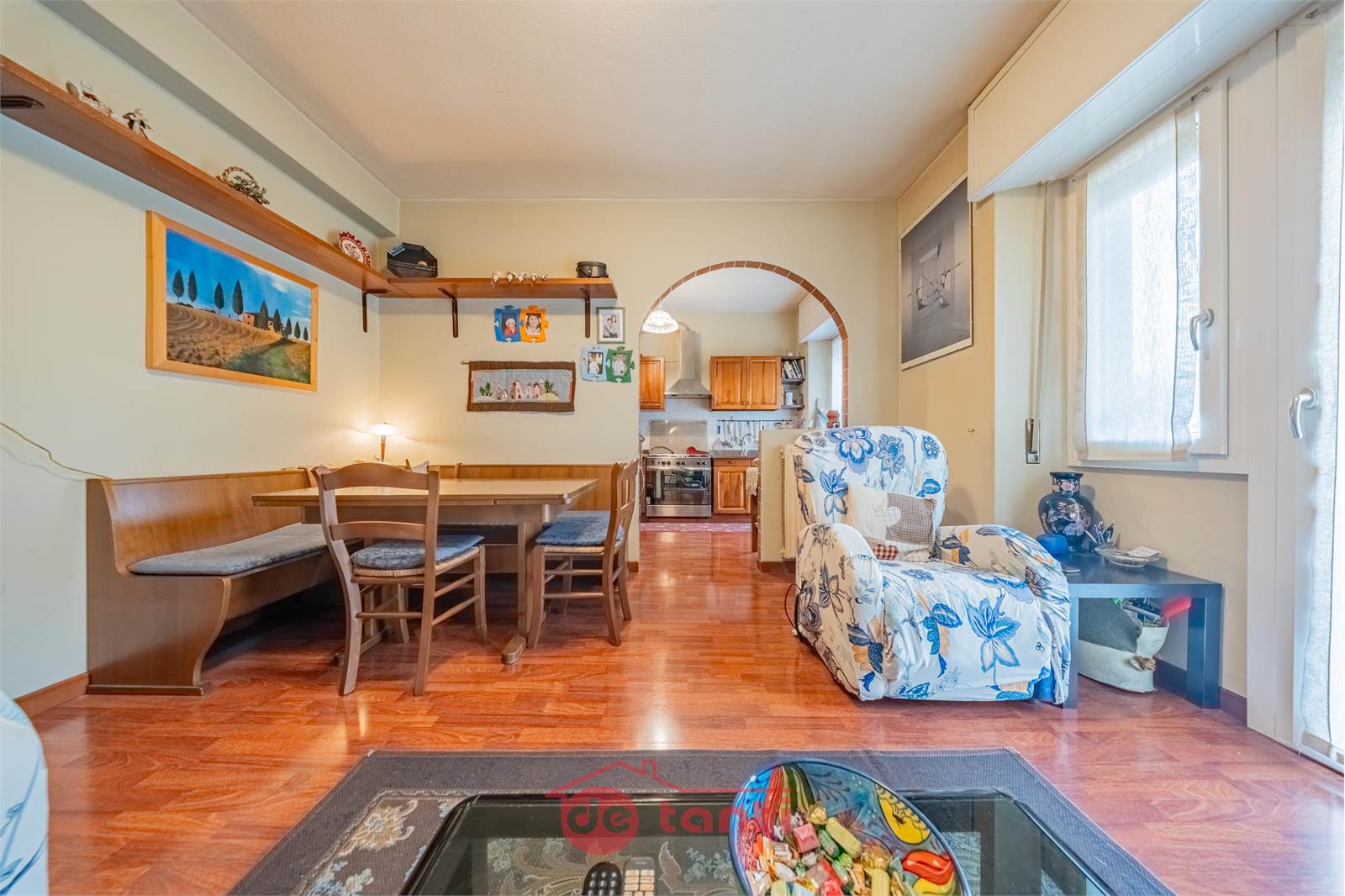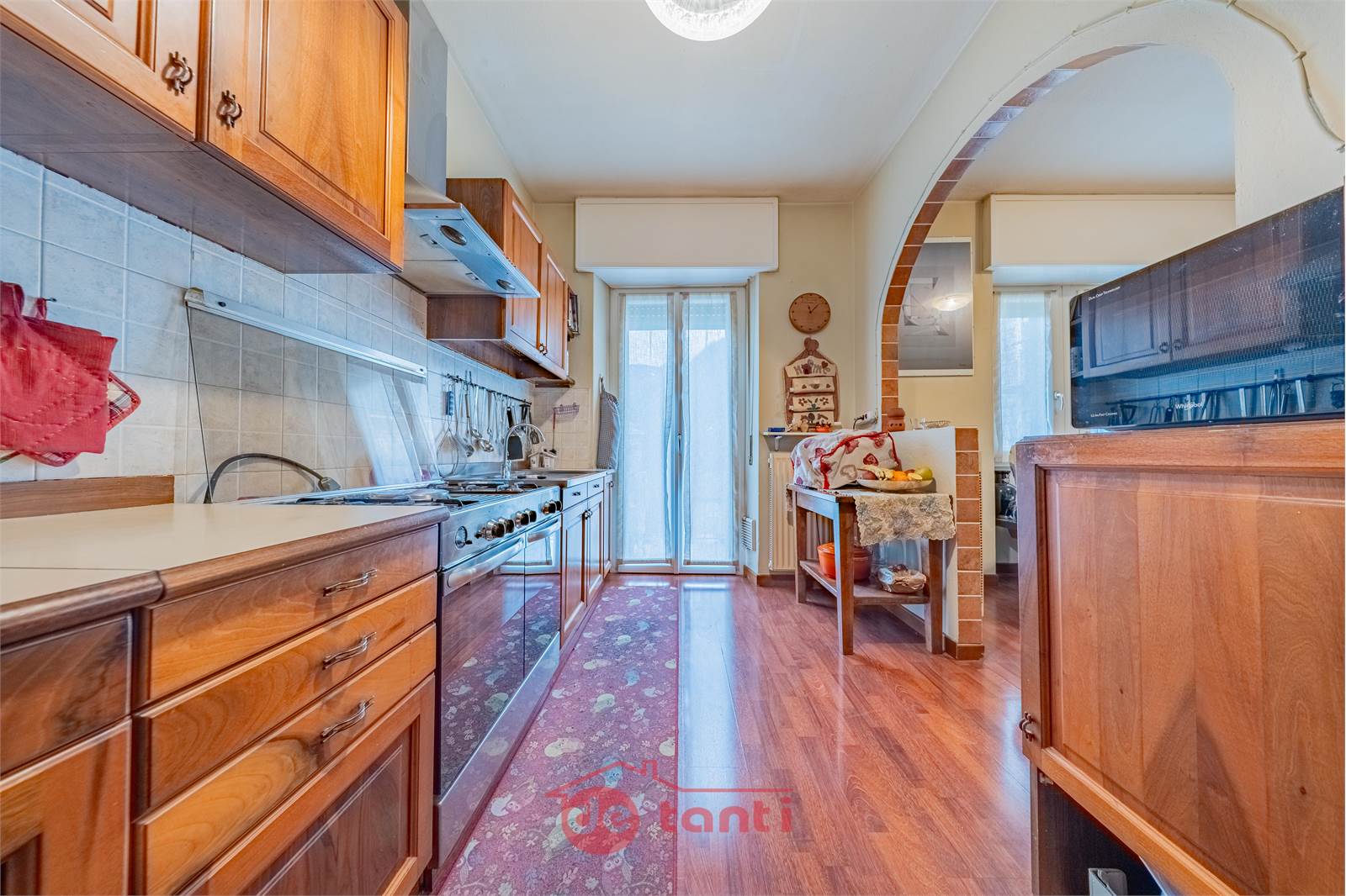 Entrando si percepisce subito una distribuzione razionale degli spazi. Gli ambienti sono distinti, ben proporzionati, pensati per essere vissuti senza adattamenti forzati. Il soggiorno è accogliente e luminoso, collegato alla cucina attraverso un arco che crea continuità visiva mantenendo però la separazione funzionale degli spazi. La cucina è abitabile, completa, con arredi in legno solidi e accesso diretto al balconcino che regala una vista aperta e ariosa: uno spazio pratico nella quotidianità, dove cucinare, organizzare, gestire la casa con ordine.
