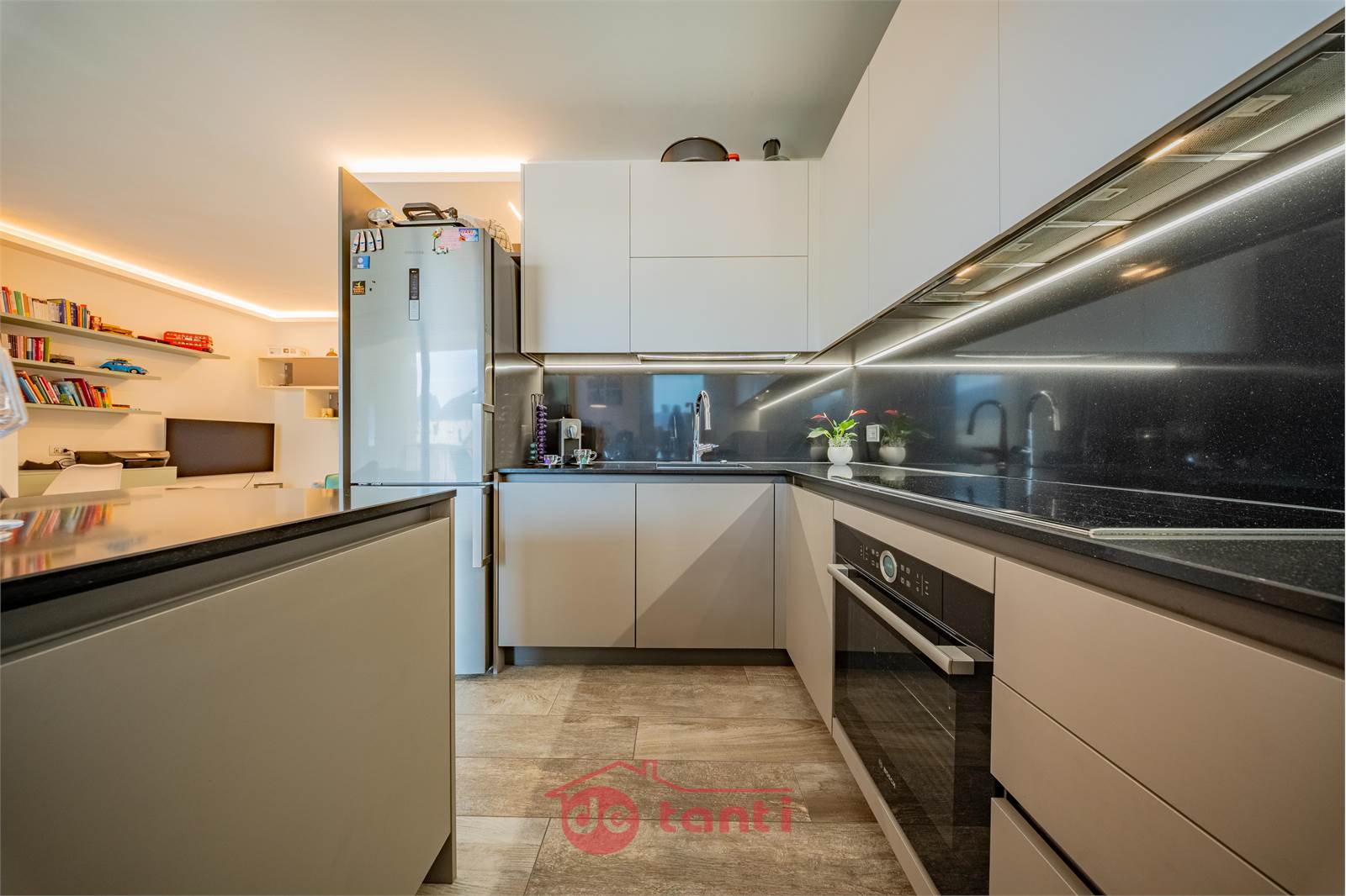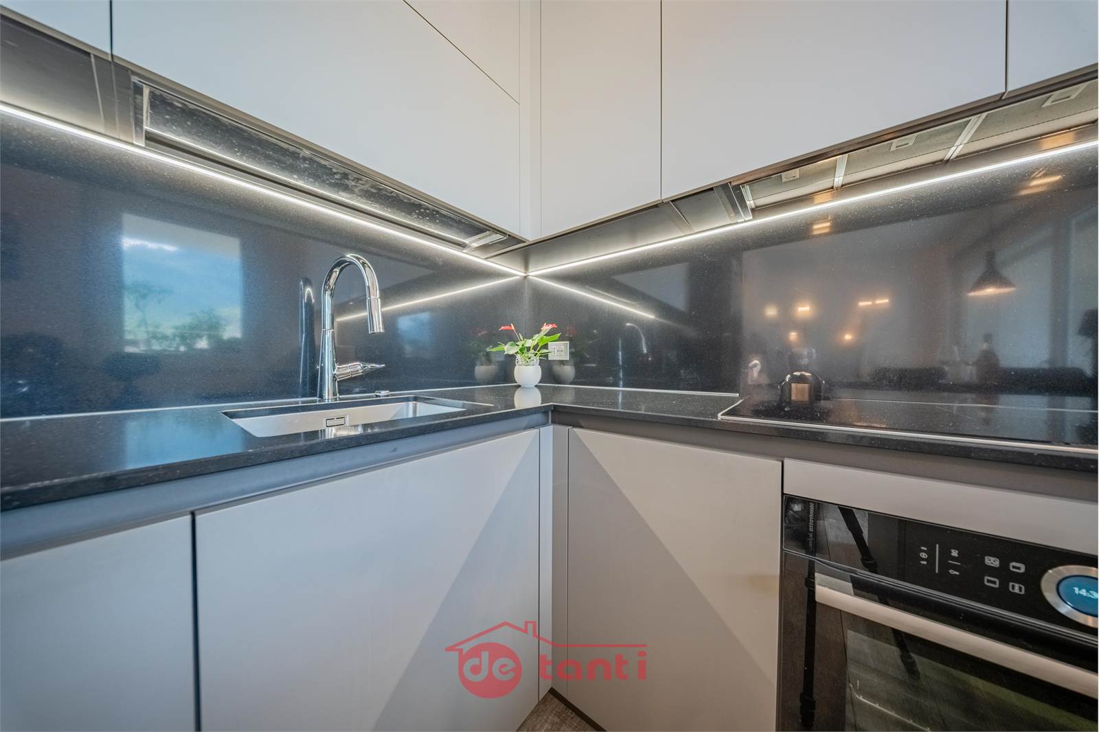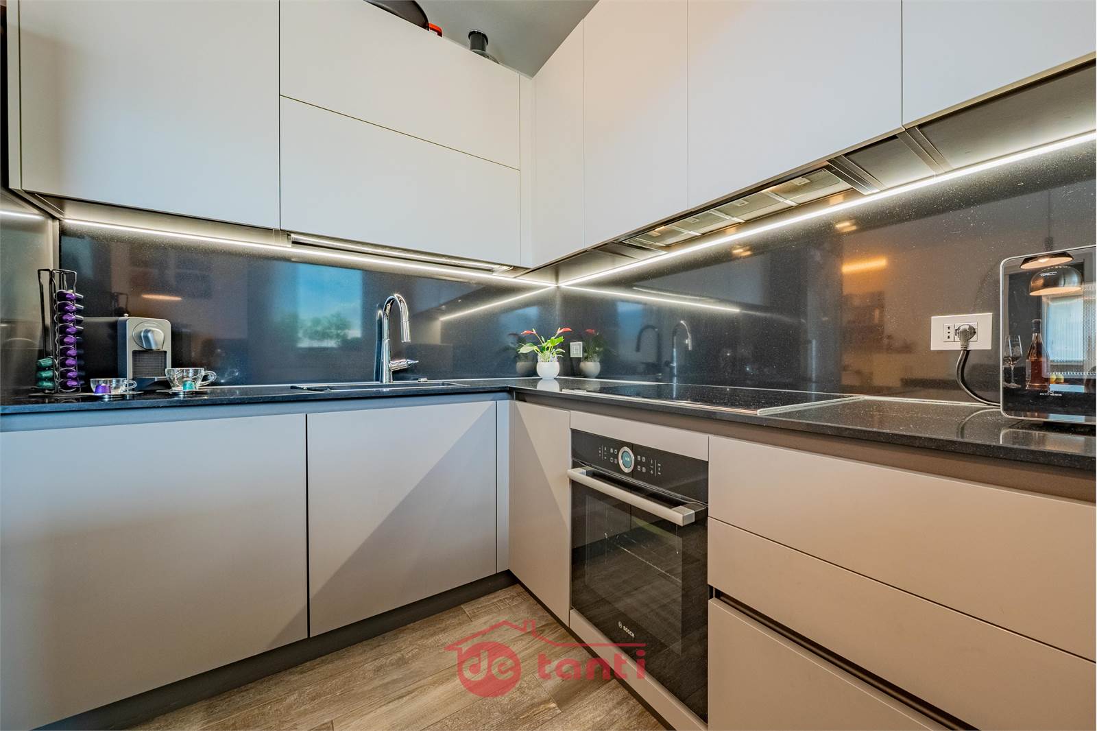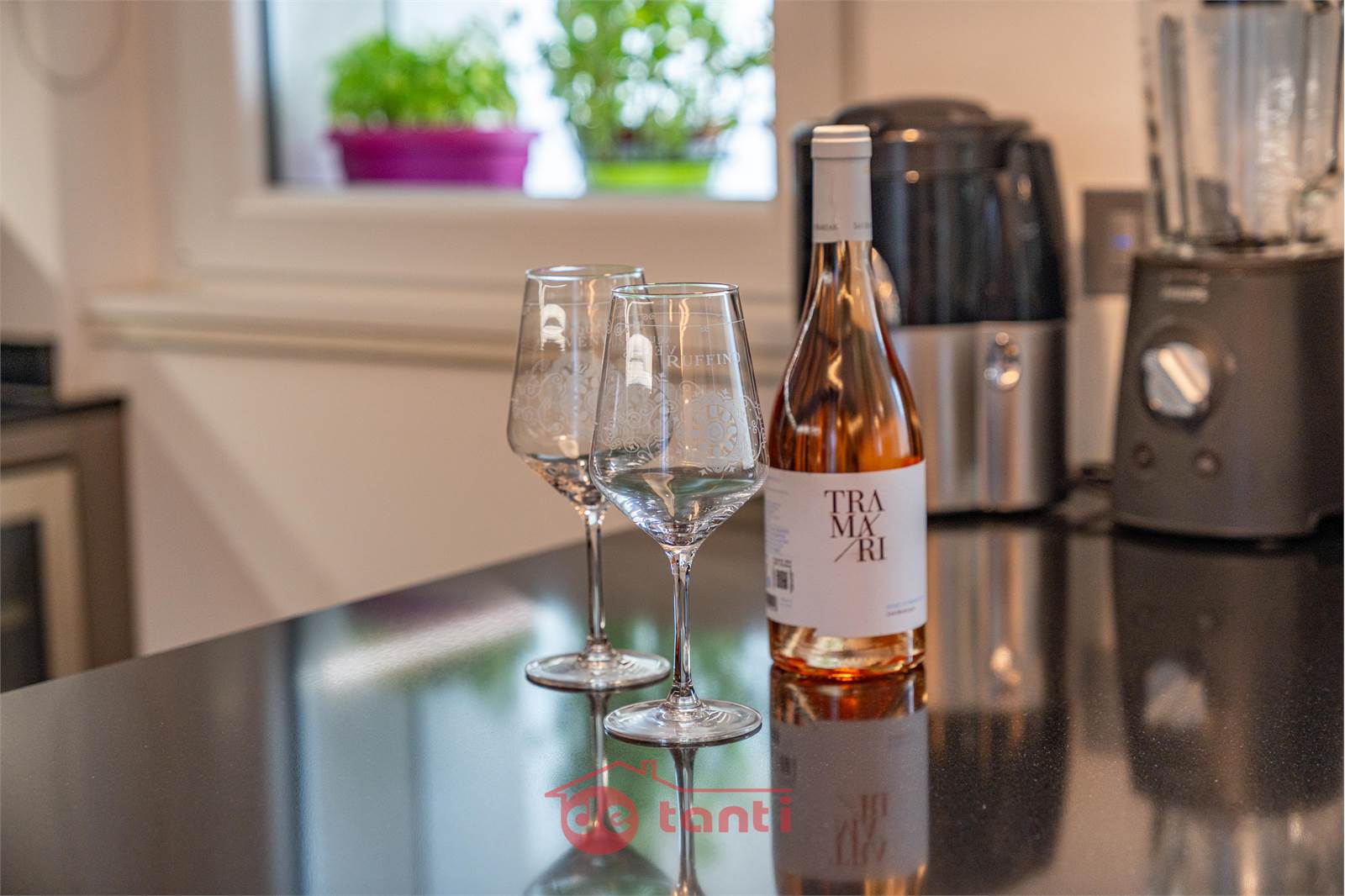 Poi entri in cucina e tutto ti parla di qualità: elettrodomestici di ultima generazione, piano in quarzo nero degno di un designer d’interni, luci a LED sapientemente integrate, una cantinetta vini già pronta per il tuo prossimo brindisi.
