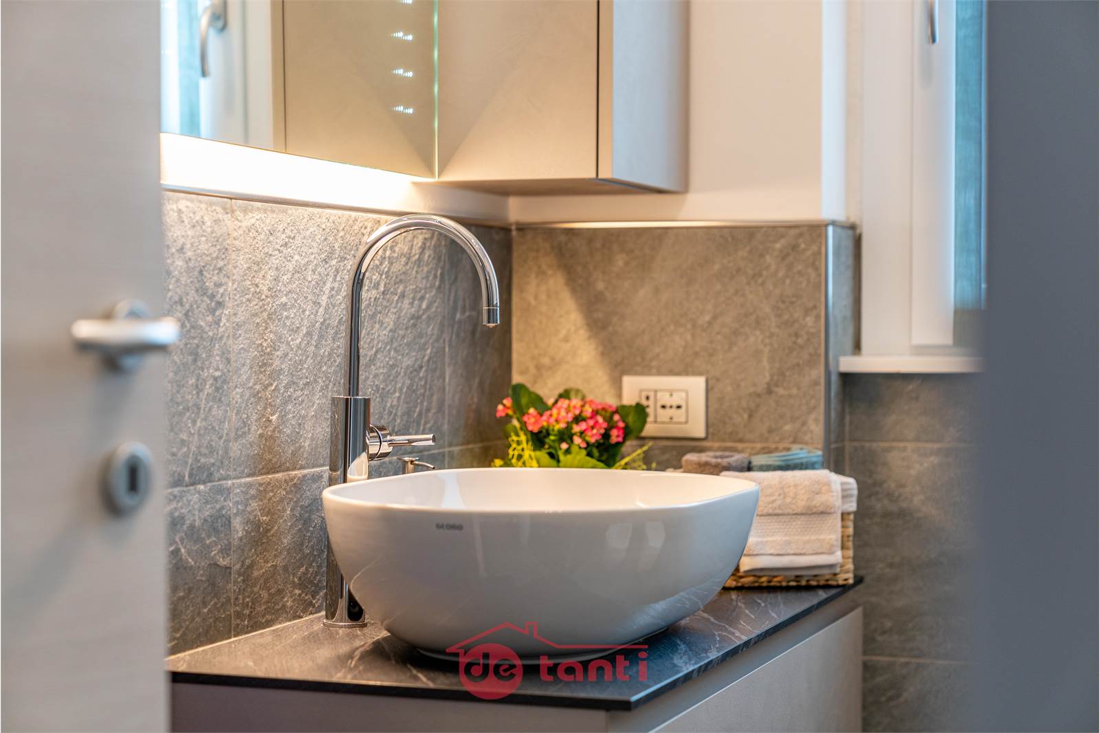 La zona giorno si completa con un primo servizio, completamente attrezzato, che presenta anche una comoda zona lavanderia che unisce comodità e praticità.