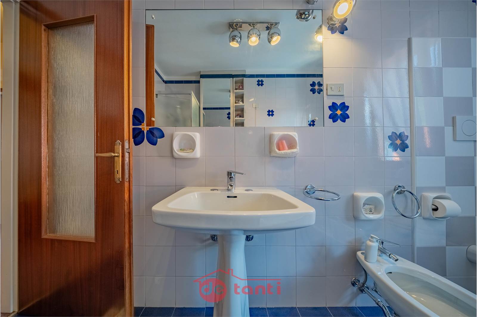 Il bagno è stato progettato per la massima praticità: la presenza sia della vasca che della doccia consente di scegliere tra un momento di relax o la rapidità di una doccia veloce, perfetta per adattarsi ai diversi ritmi della famiglia.