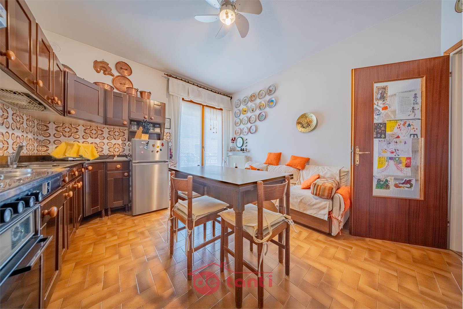 La cucina separata, di generose dimensioni e già attrezzata, è un vero punto di forza: uno spazio organizzato dove preparare con calma i pasti, insegnare ai bambini le ricette di famiglia o semplicemente godersi la praticità di avere tutto a portata di mano senza invadere il living.