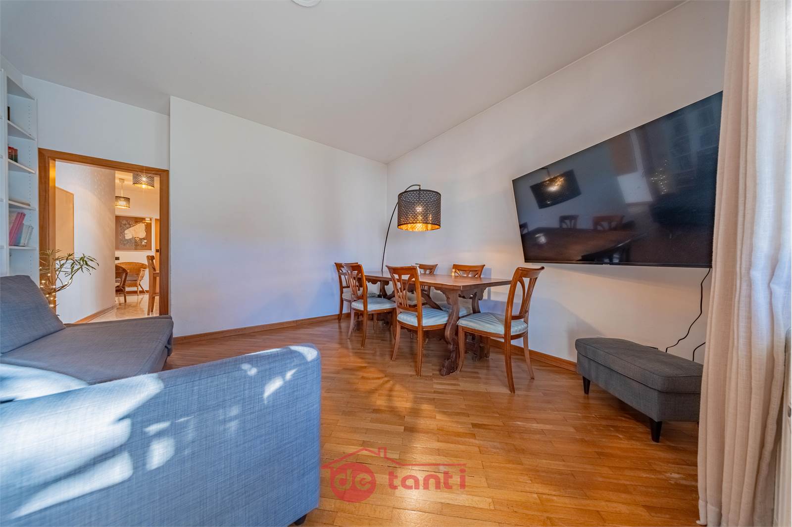 Entrando si percepisce subito l’equilibrio degli ambienti. Il soggiorno è ampio, luminoso, arioso: uno spazio che non obbliga a continui compromessi ma accompagna la routine con naturalezza. Le cene in famiglia trovano posto senza sacrifici, i momenti di relax non devono incastrarsi tra arredi troppo ravvicinati, i bambini possono muoversi liberamente. La luce naturale, presente per gran parte della giornata, rende l’atmosfera accogliente e stabile, quella sensazione che rassicura chi desidera fare una scelta ponderata e duratura.