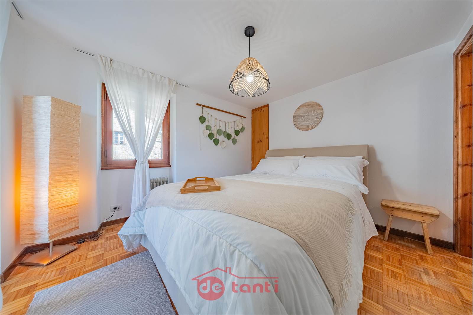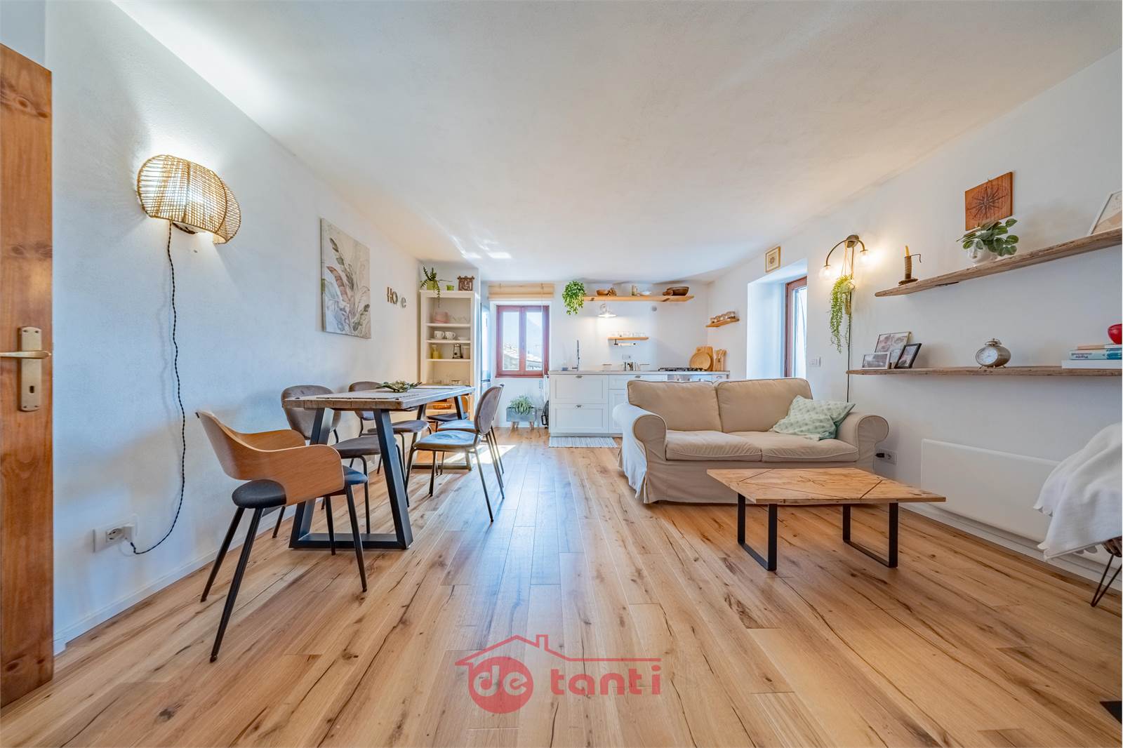 La zona giorno è uno degli ambienti meglio riusciti dell’abitazione: ampia, luminosa, curata, con un colpo d’occhio ordinato e contemporaneo che la rende accogliente senza perdere identità. Da ogni dettaglio si percepisce chiaramente il lavoro fatto sulla qualità degli interni, con il parquet nuovo che scalda l’ambiente, la luce che valorizza i volumi e una resa estetica pulita, quasi da set fotografico, ma con tutta la concretezza di una casa pensata per essere vissuta davvero. Qui la bellezza non è fine a se stessa: è il risultato di una ristrutturazione che rende gli spazi immediatamente godibili e ben leggibili, qualità decisive per un target razionale che vuole riconoscere subito il valore reale di ciò che sta acquistando. La presenza della stufa a legna con accumulatore aggiunge un ulteriore livello di comfort, migliorando la percezione di calore e rendendo l’ambiente ancora più piacevole nella stagione fredda.