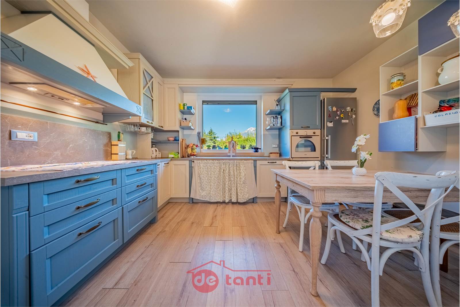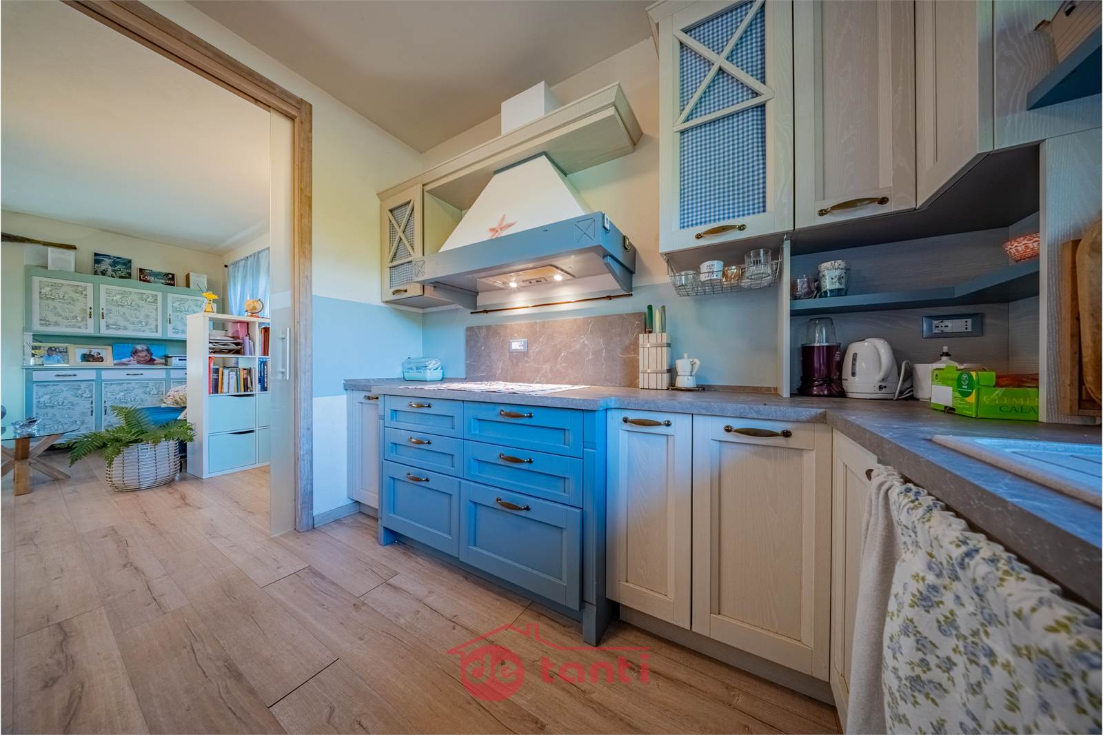 La zona giorno trasmette subito equilibrio. Il soggiorno è ampio, luminoso, facile da arredare e soprattutto semplice da vivere: uno spazio pensato per i momenti insieme, per la routine familiare, per il tempo condiviso senza costrizioni. Accanto, la cucina colpisce per il suo carattere accogliente e ordinato, con finiture che danno personalità all’ambiente e una disposizione che rende ogni gesto quotidiano più comodo, più intuitivo, più piacevole. Non è solo bella da vedere, è una cucina che accompagna davvero la vita di casa.