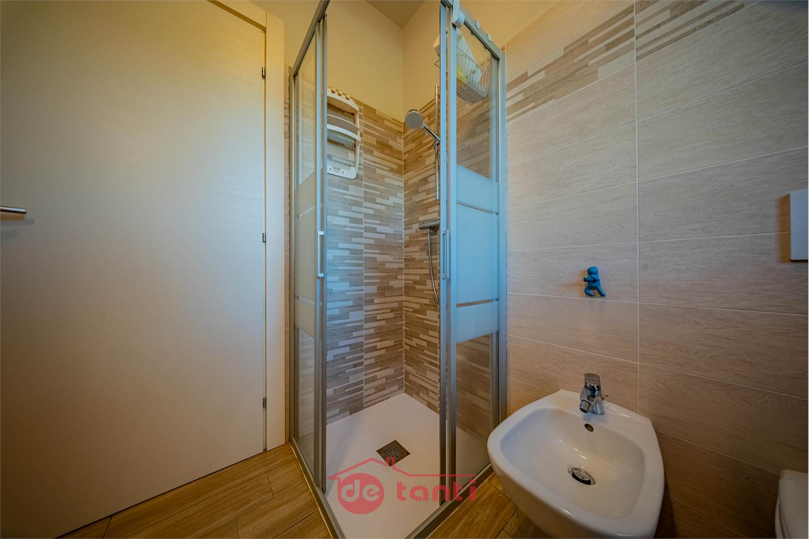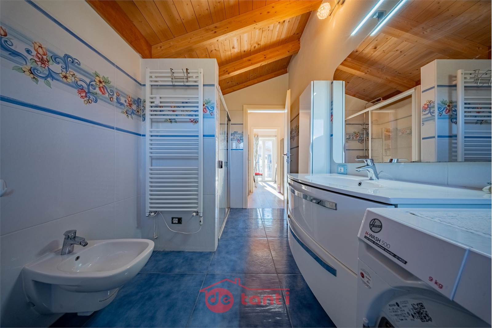 Anche il bagno, moderno e luminoso, si inserisce con coerenza in un immobile che trasmette una sensazione di attenzione diffusa. Nulla appare lasciato al caso: materiali, luce, distribuzione e atmosfera collaborano nel dare alla casa un’identità precisa, fatta di comfort, pulizia visiva e qualità concreta.