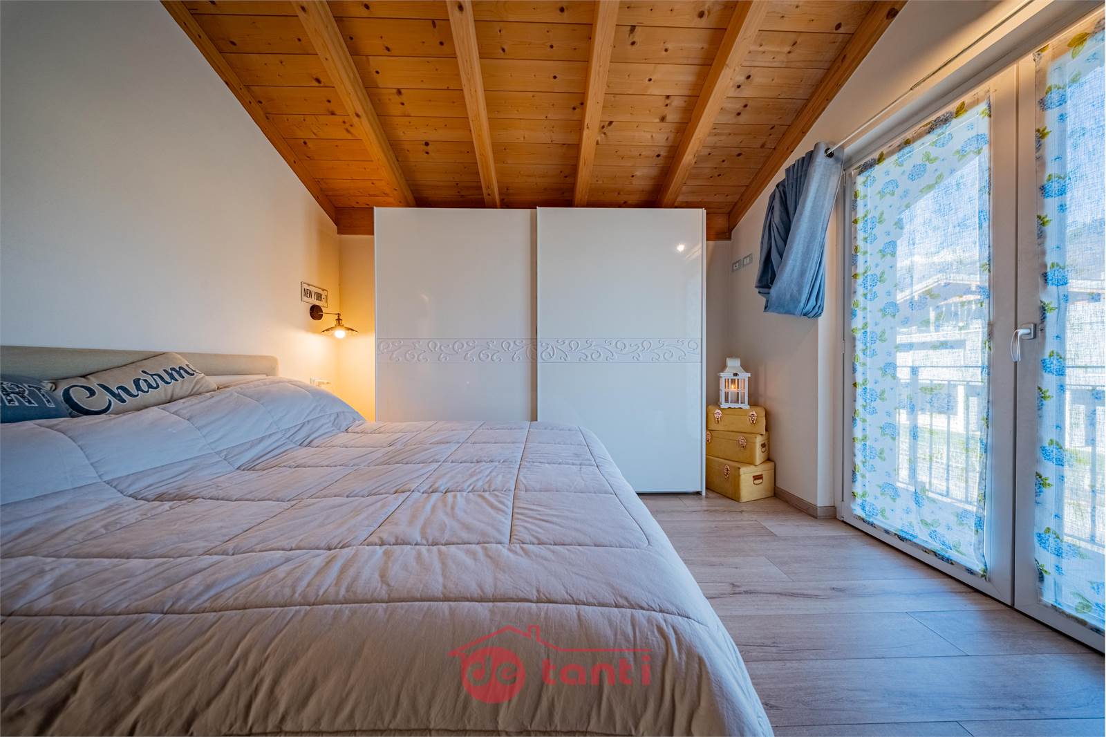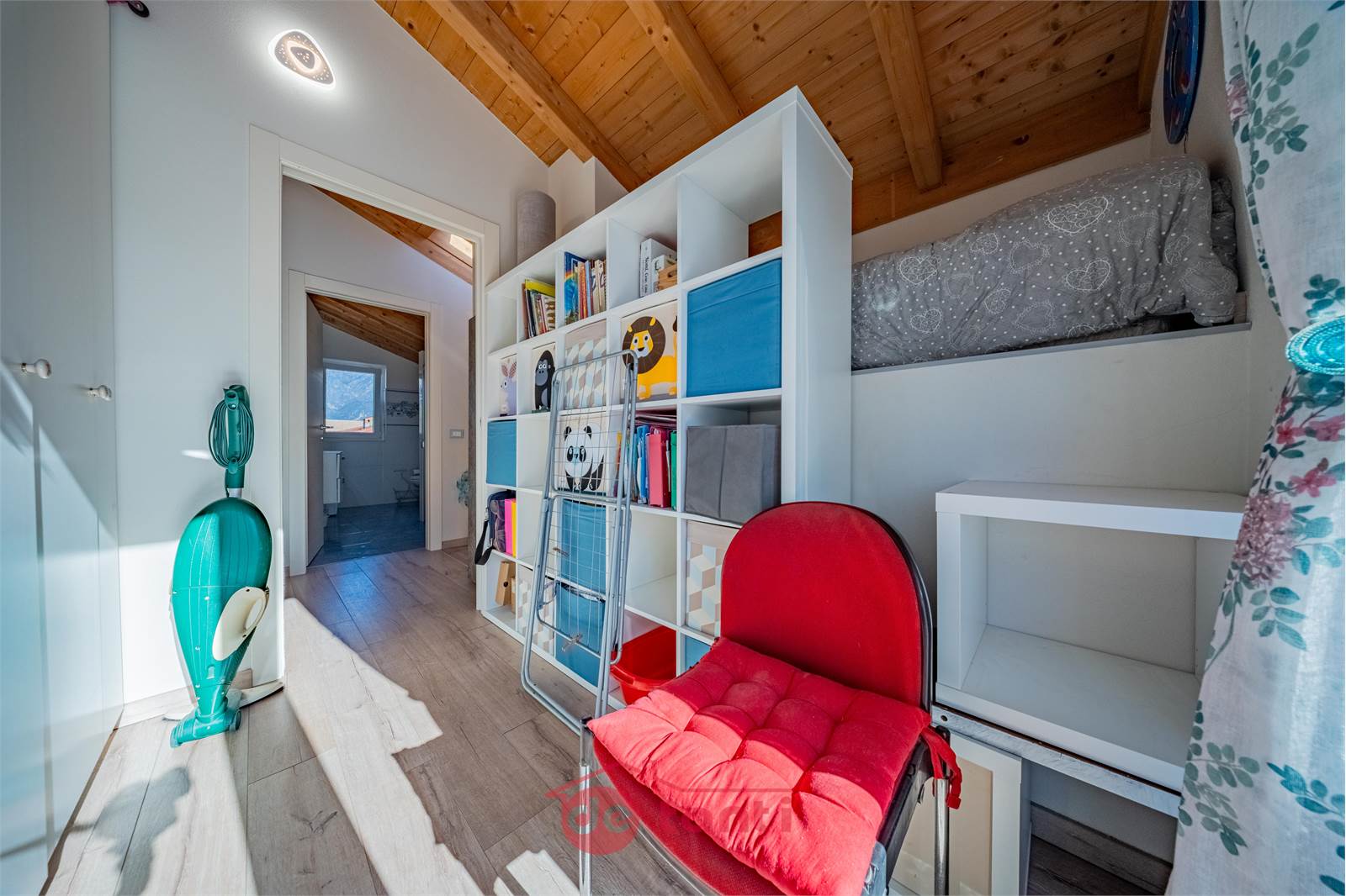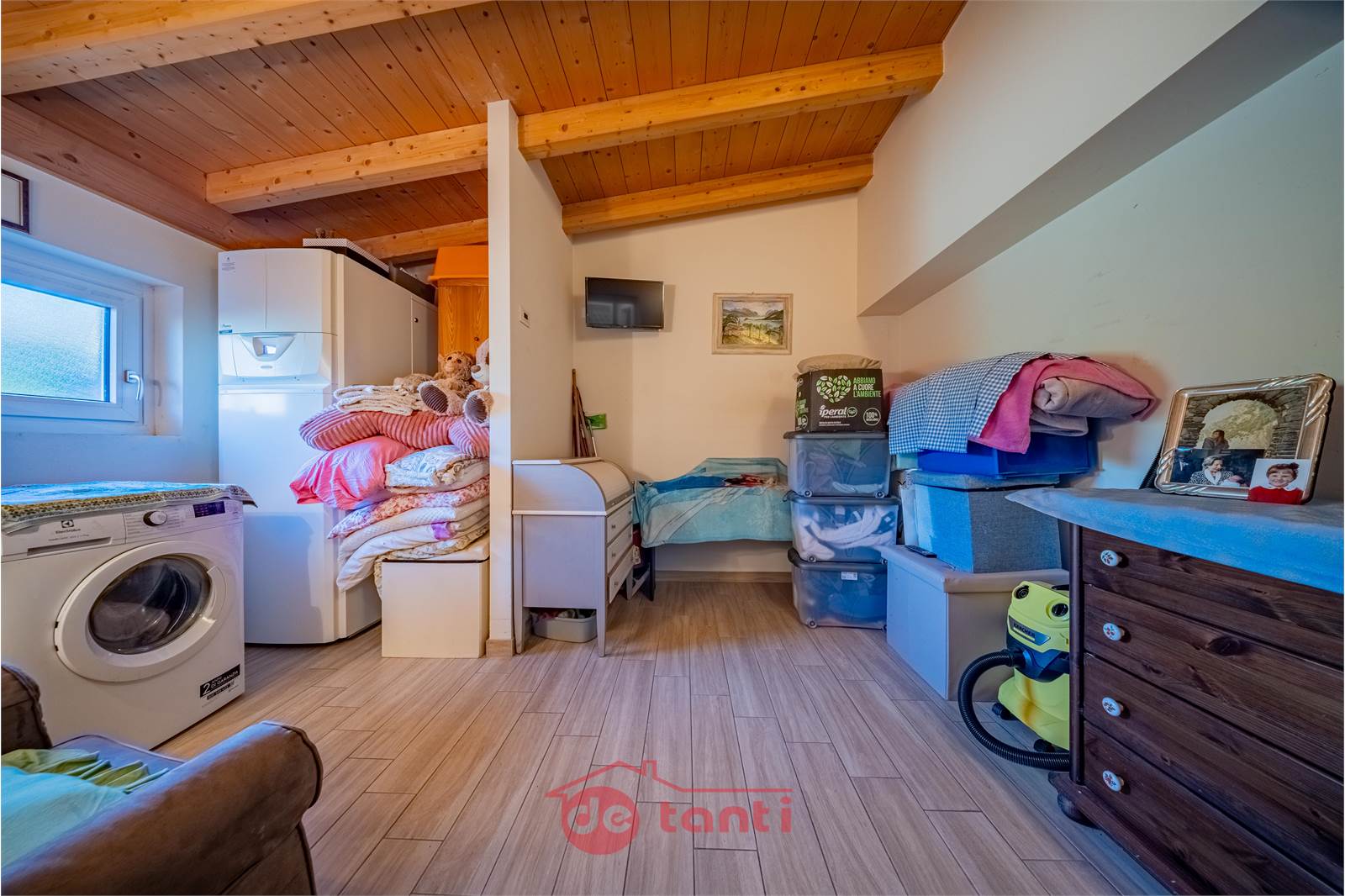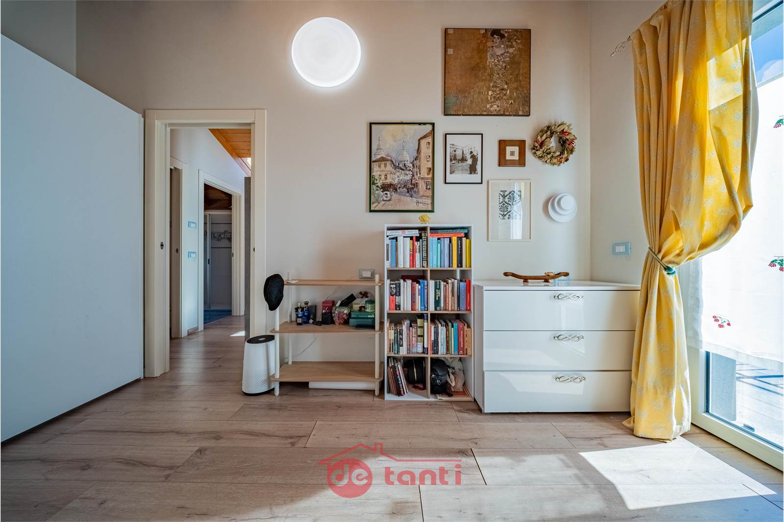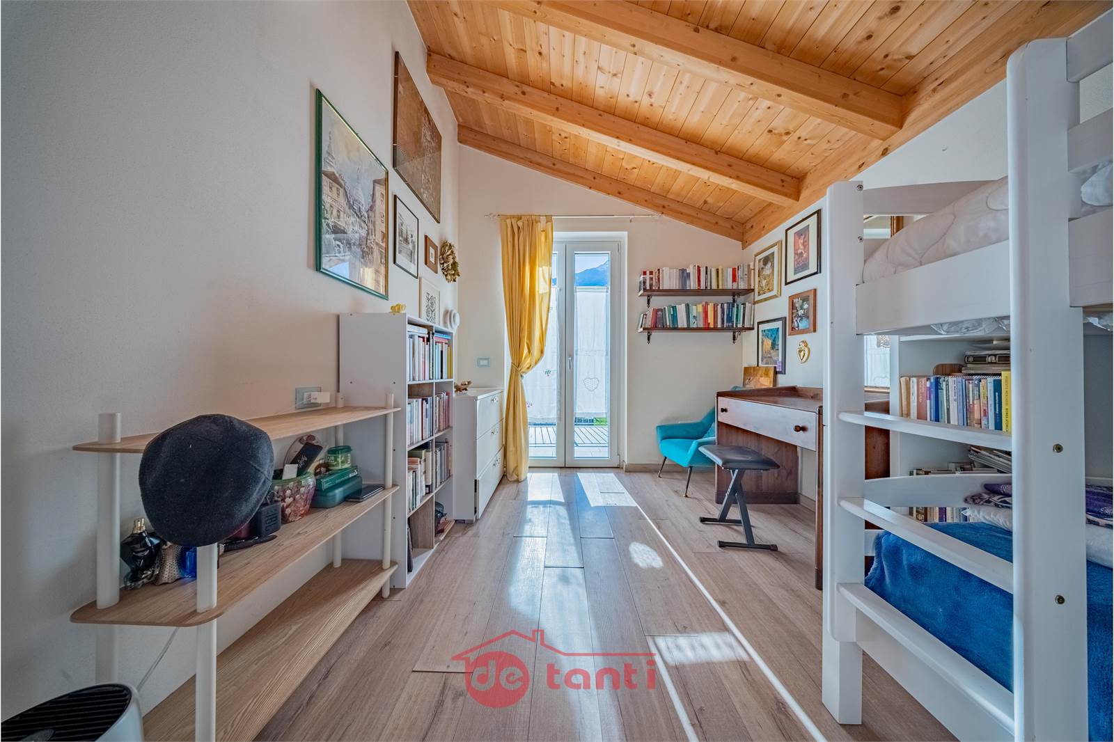 La zona notte, con le sue due camere più ripostiglio, conserva la parte più intima e rassicurante dell’abitazione. La camera con il soffitto in legno a vista regala un colpo d’occhio caldo, curato e distintivo, capace di rendere l’ambiente raccolto ma allo stesso tempo elegante. È uno di quei dettagli che non servono solo a colpire, ma che alzano concretamente la qualità del vivere quotidiano, rendendo la casa più riconoscibile, più personale, più completa. Le stanze offrono la flessibilità che una famiglia cerca davvero: spazi per crescere, per lavorare, per riposare, per cambiare senza dover ricominciare da capo.