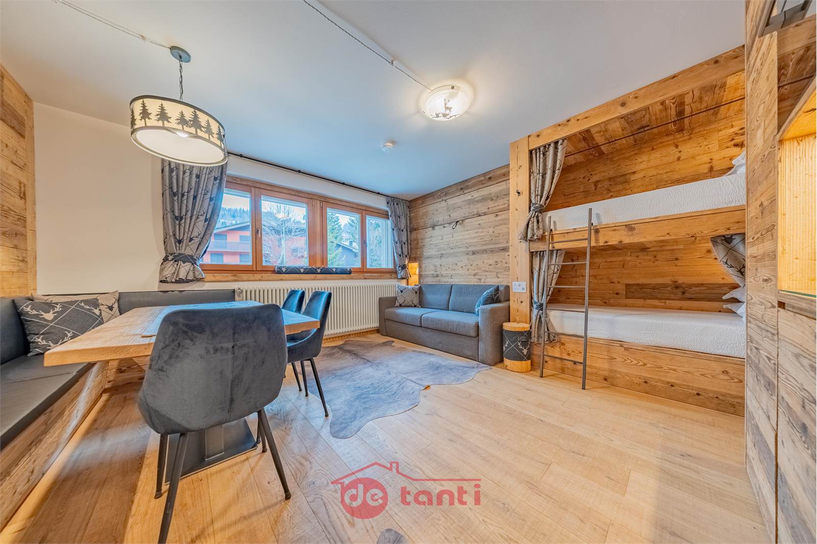 Questo appartamento in pieno centro, via Andine, rappresenta una di quelle occasioni rare per chi cerca un punto d’appoggio intelligente, elegante e pronto da vivere, ma anche per chi vuole fare un investimento concreto da mettere a reddito in una delle località più richieste della montagna.