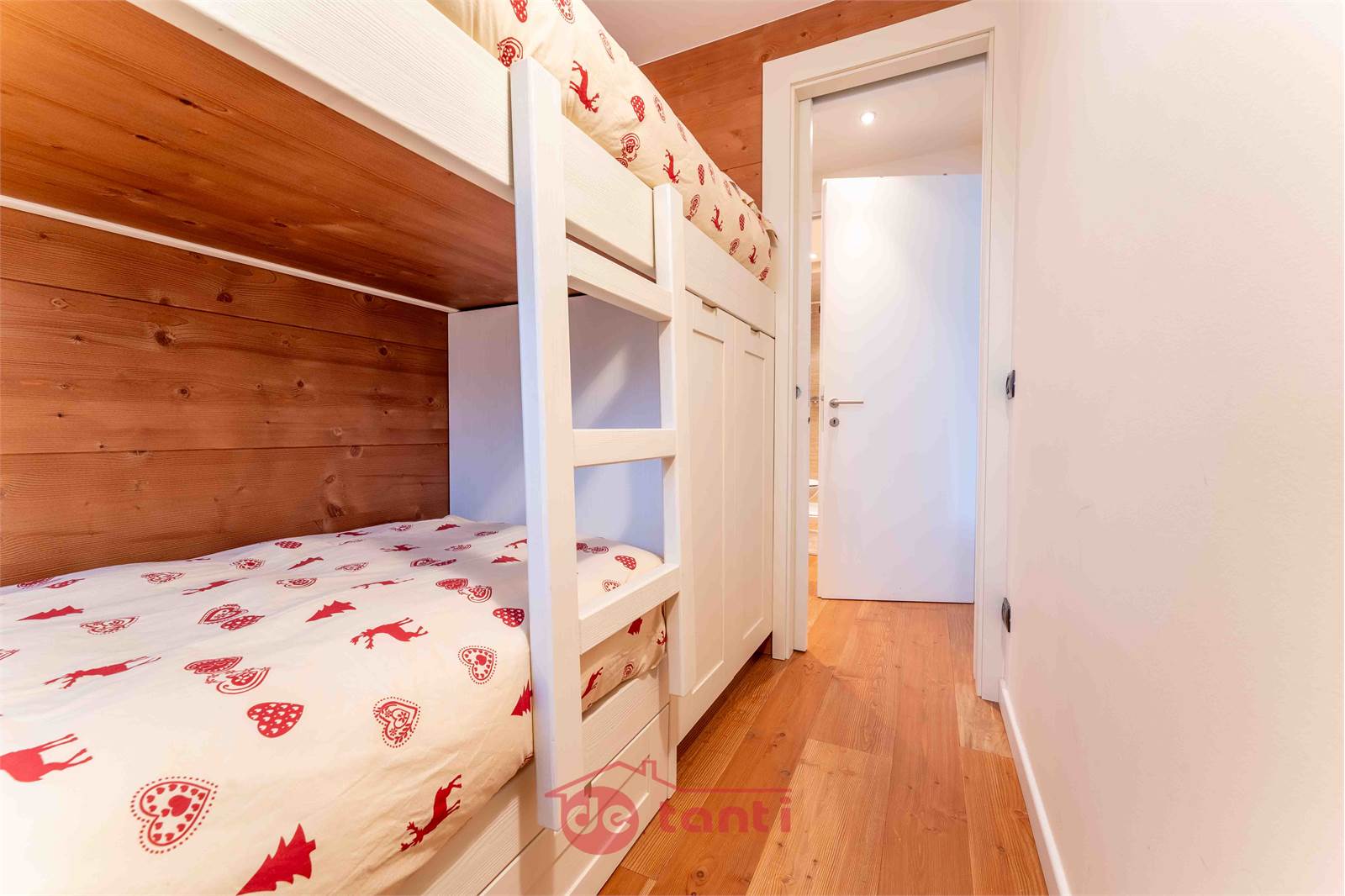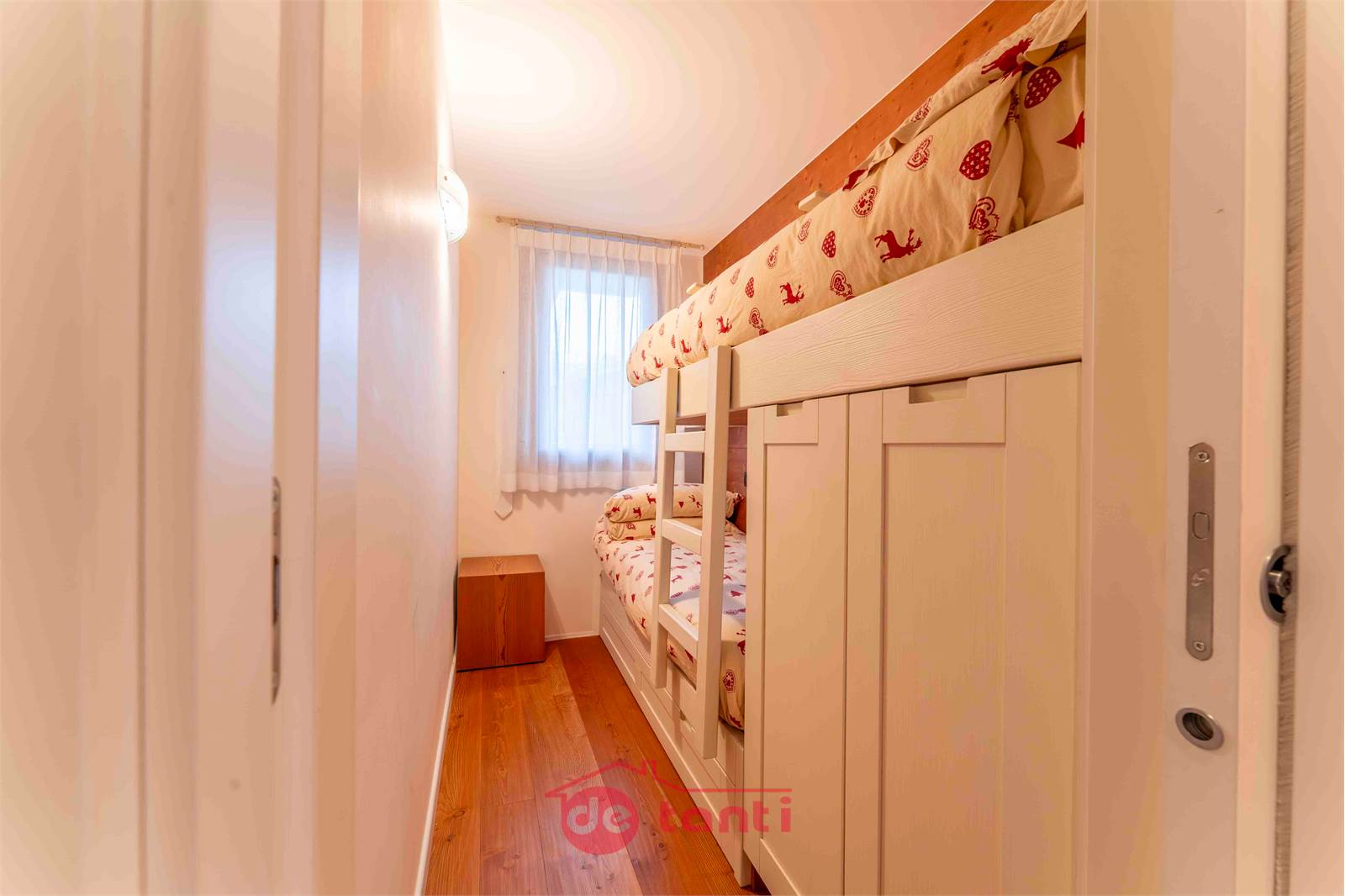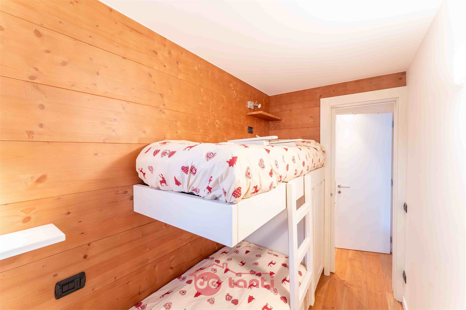 La cucina, moderna e perfettamente attrezzata, è il cuore pratico della casa: ordinata, essenziale, accogliente. Le due camere, una matrimoniale e una con letto a castello, offrono spazi perfettamente pensati per la vita quotidiana o per le vacanze con chi si ama. Il bagno, completo e curato nei dettagli, garantisce tutto il comfort necessario. E a completare la proprietà, non uno, ma ben due box auto: una sicurezza impagabile per chi vuole dimenticarsi del problema del parcheggio o avere sempre uno spazio pronto per l’attrezzatura da sci.