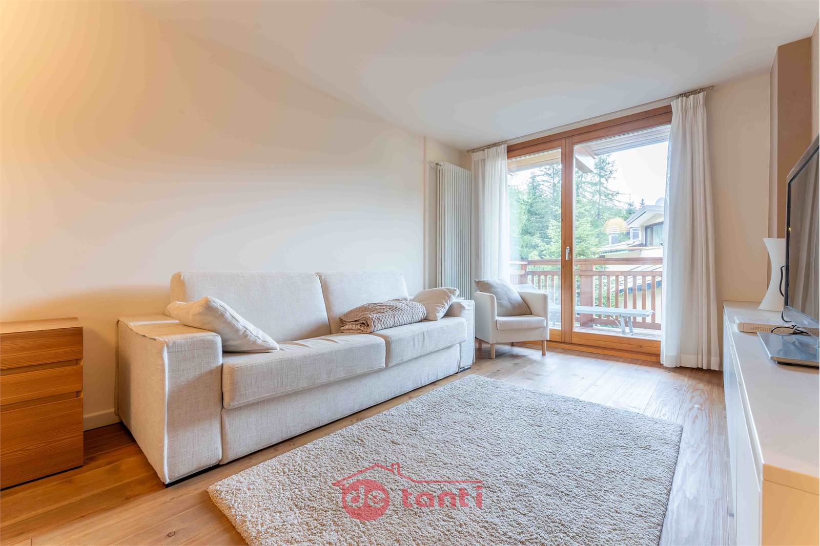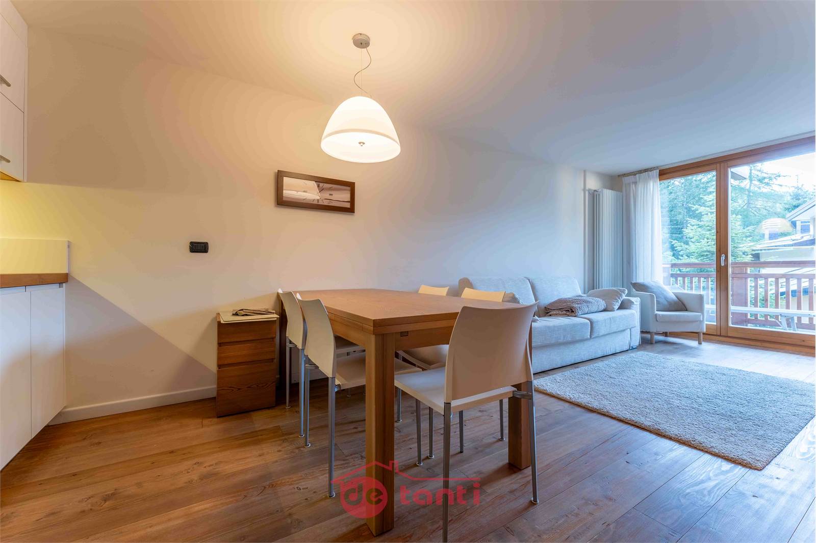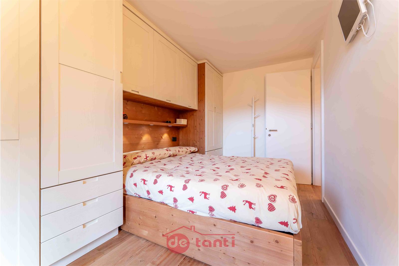 La cucina, moderna e perfettamente attrezzata, è il cuore pratico della casa: ordinata, essenziale, accogliente. Le due camere, una matrimoniale e una con letto a castello, offrono spazi perfettamente pensati per la vita quotidiana o per le vacanze con chi si ama. Il bagno, completo e curato nei dettagli, garantisce tutto il comfort necessario. E a completare la proprietà, non uno, ma ben due box auto: una sicurezza impagabile per chi vuole dimenticarsi del problema del parcheggio o avere sempre uno spazio pronto per l’attrezzatura da sci.