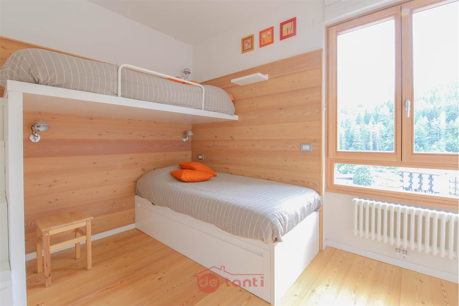 Nel reparto notte, la camera matrimoniale conserva un’atmosfera serena e luminosa, mentre la seconda camera, con due letti perfetti per bambini o ospiti, affaccia sul verde e regala quella pace tipica della montagna vissuta senza frenesia. La qualità dell’edificio è stata ulteriormente valorizzata nel 2022 con il rifacimento del cappotto termico, un intervento che non solo migliora il comfort, ma offrirà benefici concreti anche alla classe energetica, destinata a salire rispetto all’attuale D, rendendo questa scelta ancora più solida e razionale.