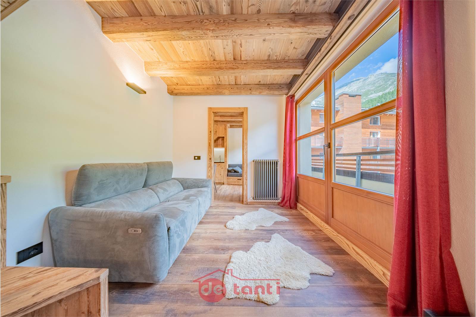 è un ambiente luminoso e arioso con cucina spaziosa, tavolo da pranzo e soggiorno affacciato all’esterno, da cui si accede alla terrazza profonda e vivibile: il tuo palco privato su Madesimo, perfetto per colazioni al sole, rientri post-sci all’aperto e serate con vista libera sui tetti e sulle cime.