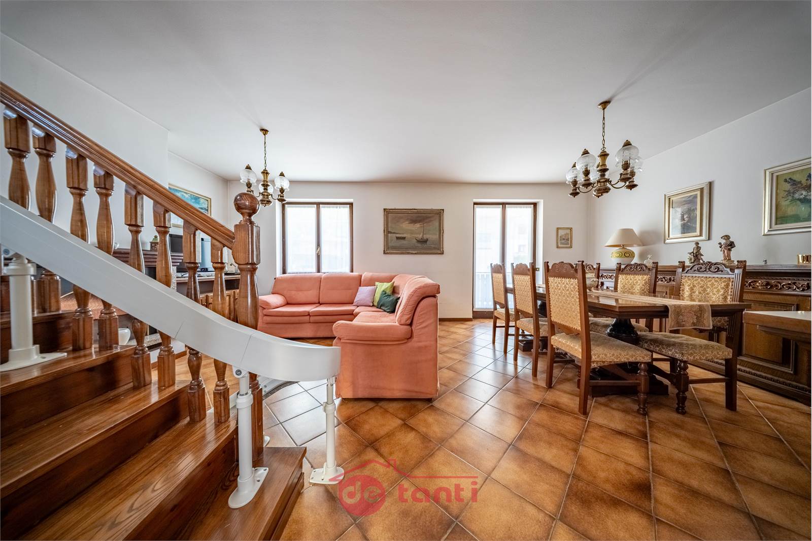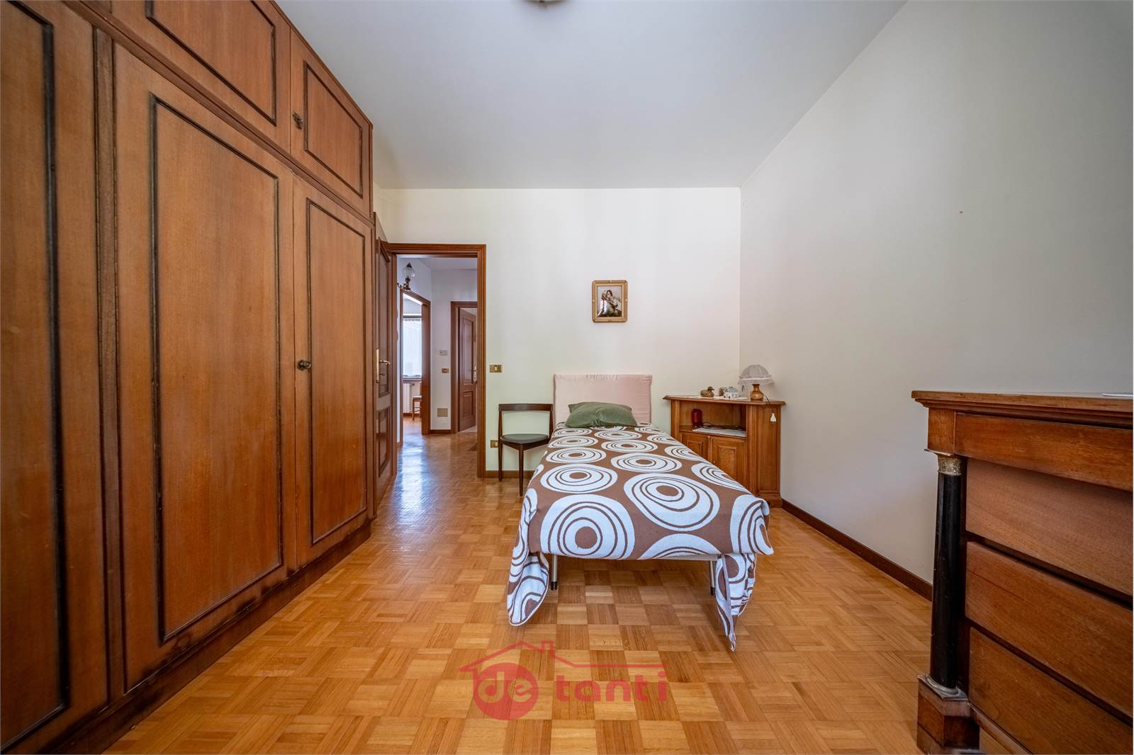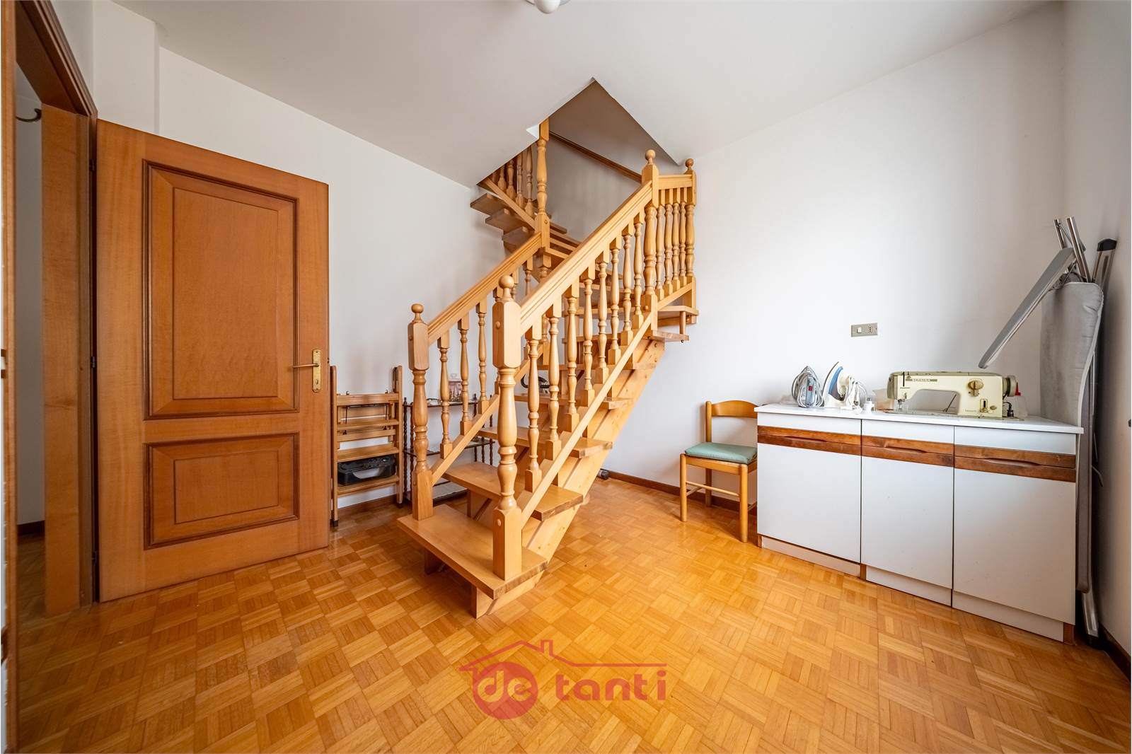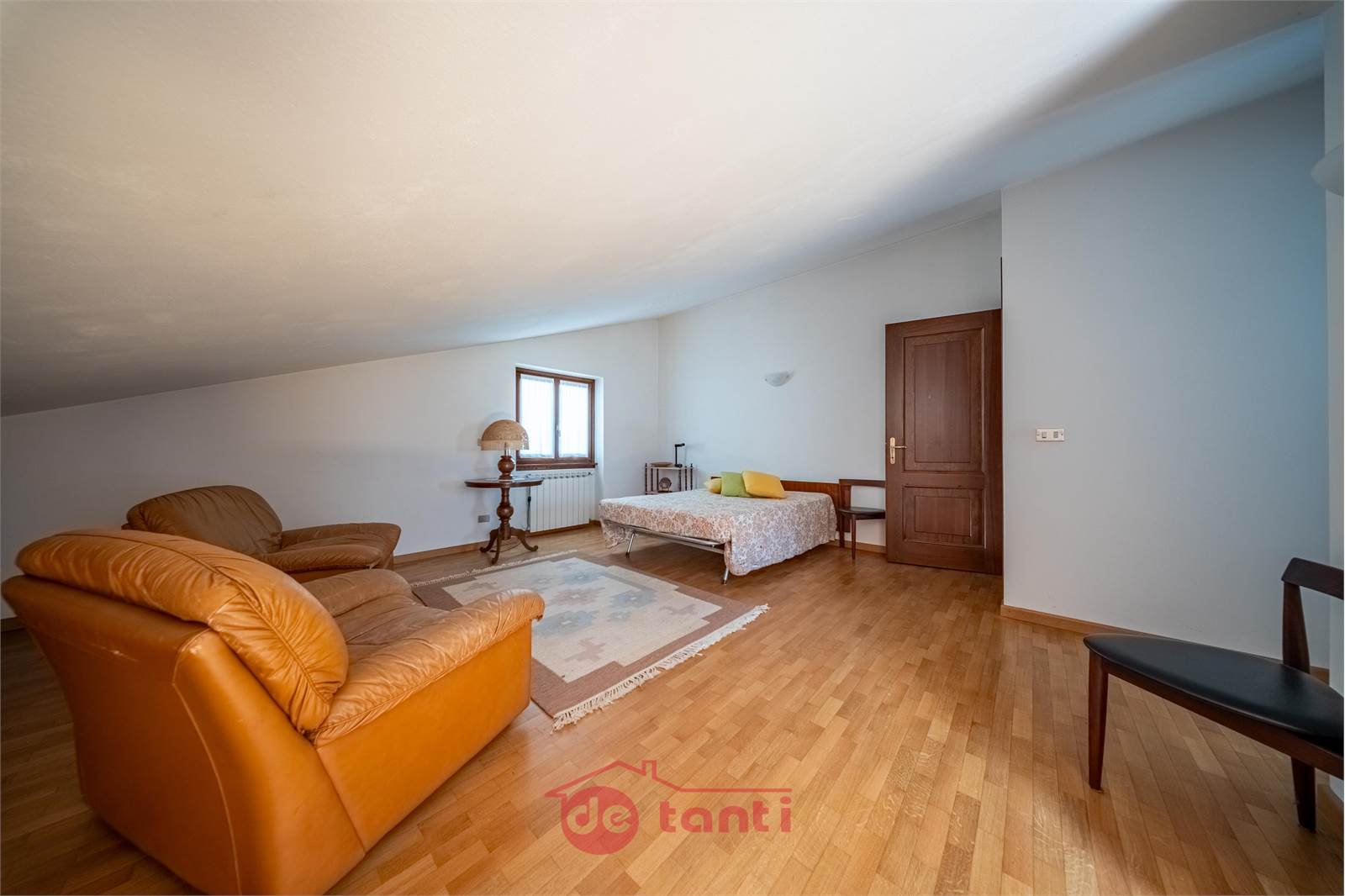 La zona notte, al piano superiore, risponde in modo efficace a una delle esigenze più sentite da chi cerca una casa spaziosa: avere ambienti che possano adattarsi davvero alla crescita della famiglia. Le tre camere offrono una distribuzione versatile, con una matrimoniale, una singola e una terza stanza collegata a un sottotetto rifinito e sorprendentemente utile. È proprio questo uno degli elementi che rendono la casa particolarmente interessante: la possibilità di contare su uno spazio in più, da interpretare nel modo più adatto alle esigenze di oggi o di domani. Può diventare studio, sala giochi, stanza per gli ospiti o zona riservata per un figlio che cresce e chiede maggiore autonomia. Il bagno principale, ampio e ben distribuito, completa il piano con una presenza concreta e comoda per la gestione familiare.