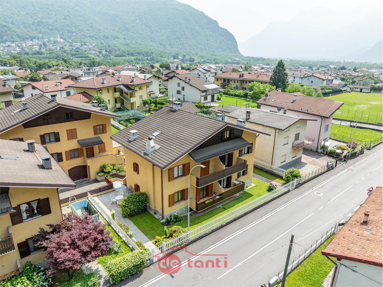 Il contesto è uno di quelli che trasmettono subito una sensazione rassicurante. La posizione è piacevole, curata, immersa in un’atmosfera ordinata e tranquilla, con il verde intorno e le montagne a fare da cornice. È il tipo di luogo che una famiglia sceglie quando desidera sentirsi bene non solo dentro casa, ma anche tutto intorno. Il giardino privato di circa 200 mq aggiunge un valore concreto alla proprietà, perché regala uno spazio esterno da vivere davvero: per i giochi dei bambini, per i momenti all’aria aperta, per una cena nella bella stagione o semplicemente per godersi quella libertà che in molte soluzioni oggi manca.
