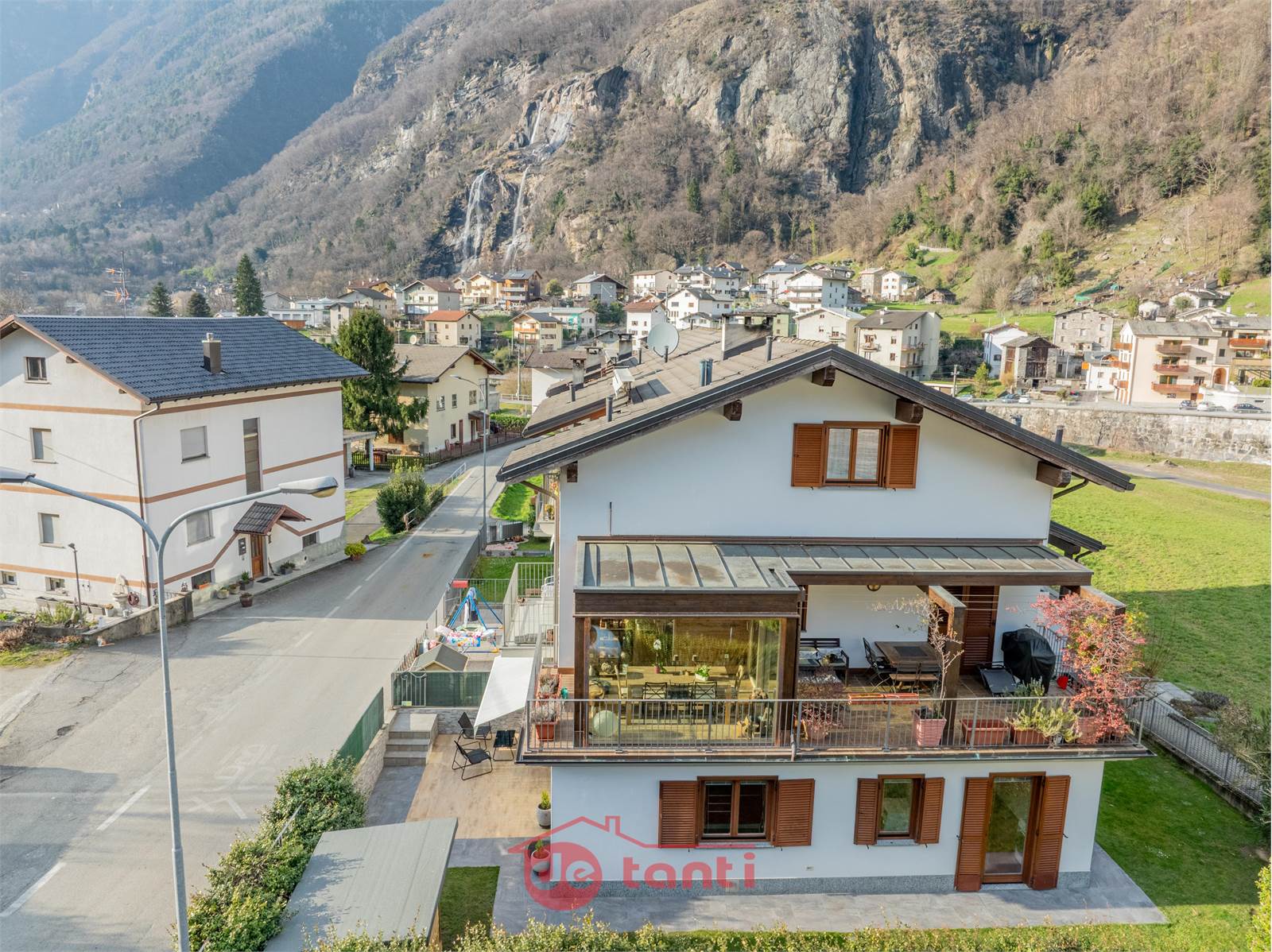 All’esterno, il giardino e la terrazza diventano un’estensione naturale della casa e rappresentano uno dei motivi più forti per scegliere questa proprietà rispetto ad altre soluzioni. Non si tratta semplicemente di avere uno sfogo esterno, ma di poter contare su uno spazio privato che rende più ampia la quotidianità, più sereni i momenti in famiglia e più piacevole ogni stagione dell’anno. In un contesto come Borgonuovo di Piuro, impreziosito dalla vista sulle Cascate dell’Acquafraggia e dalla cornice montana, questo valore cresce ancora di più.