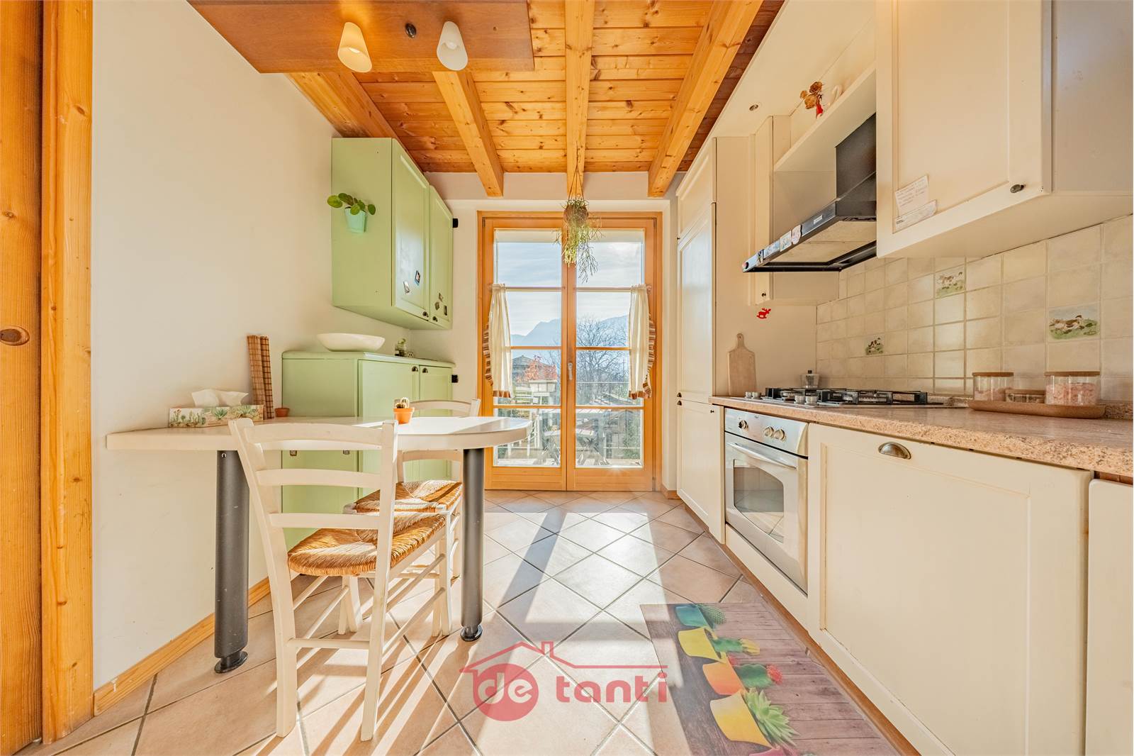 La cucina è abitabile, indipendente e direttamente comunicante con il terrazzo esposto a sud. Questo dettaglio cambia davvero il modo di vivere la casa, perché aggiunge respiro, praticità e continuità tra interno ed esterno. Il terrazzo diventa così un’estensione della zona giorno, perfetto per la bella stagione, per una pausa al sole o semplicemente per godersi quella luminosità che qui è davvero protagonista.