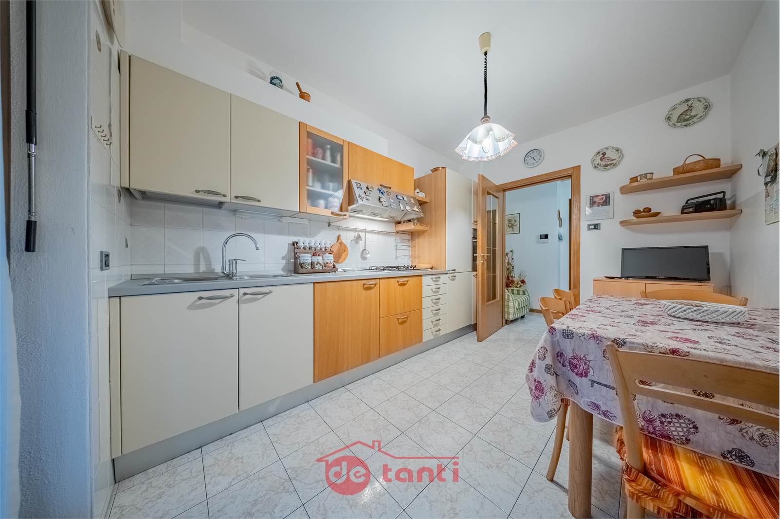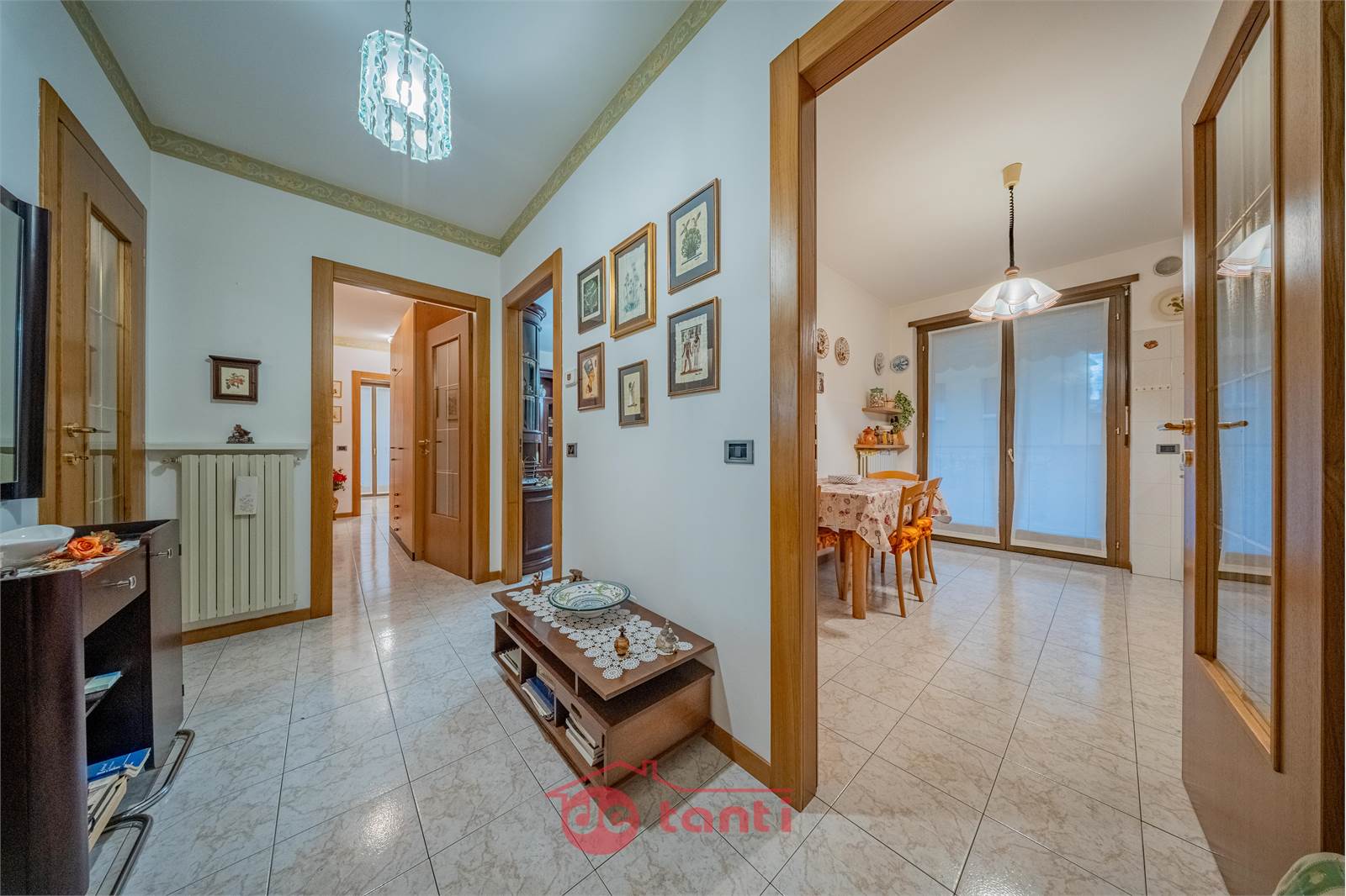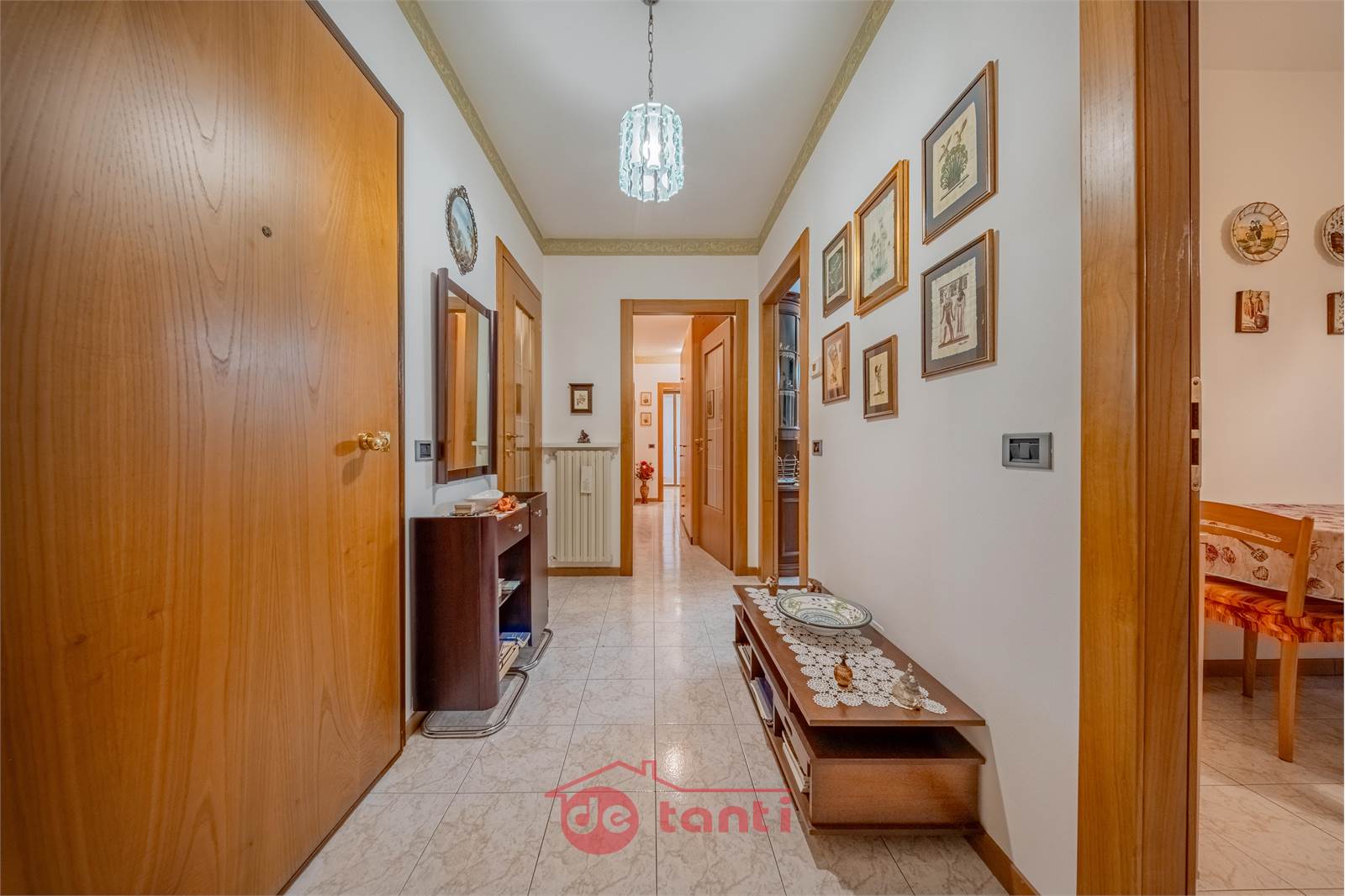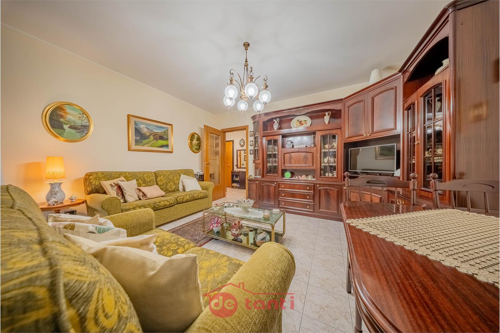 Entrando, ti accoglie un ingresso comodo, ampio, che ti fa subito respirare. La cucina è abitabile, luminosa, con un primo terrazzo dove la colazione della domenica ha già il suo angolo riservato. Il soggiorno ha quell’atmosfera che si crea solo nelle case vissute con amore: calda, accogliente, con la luce che attraversa le grandi vetrate per abbracciarti mentre torni a casa.