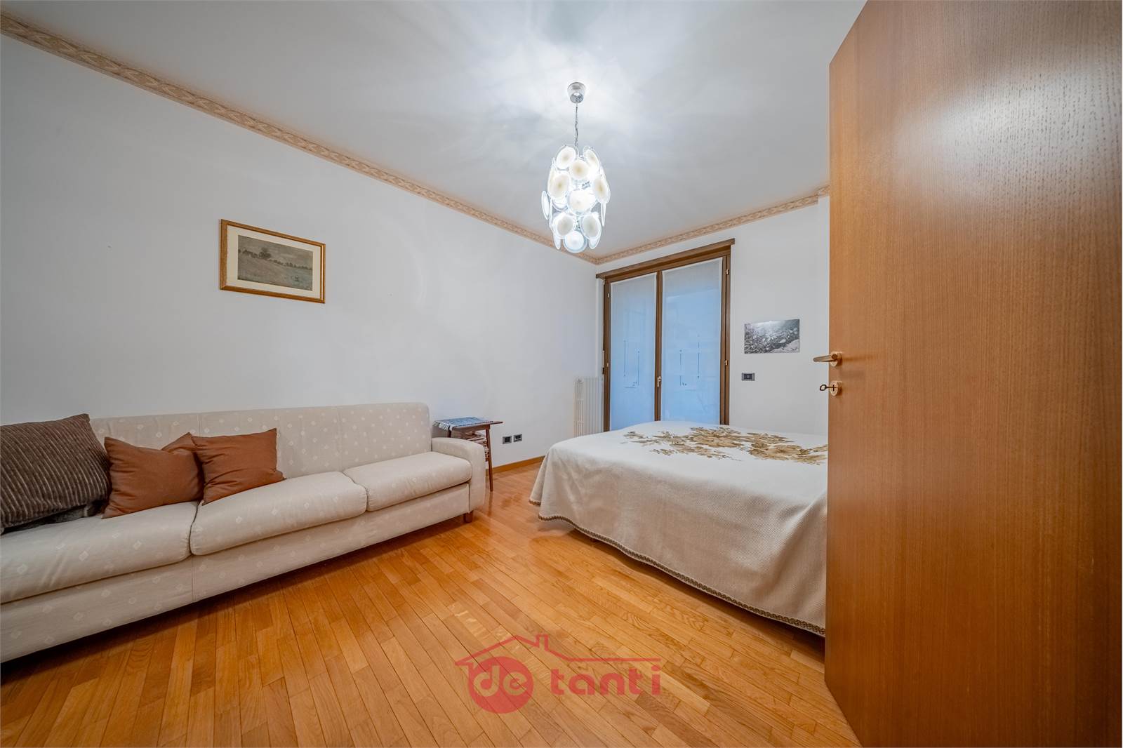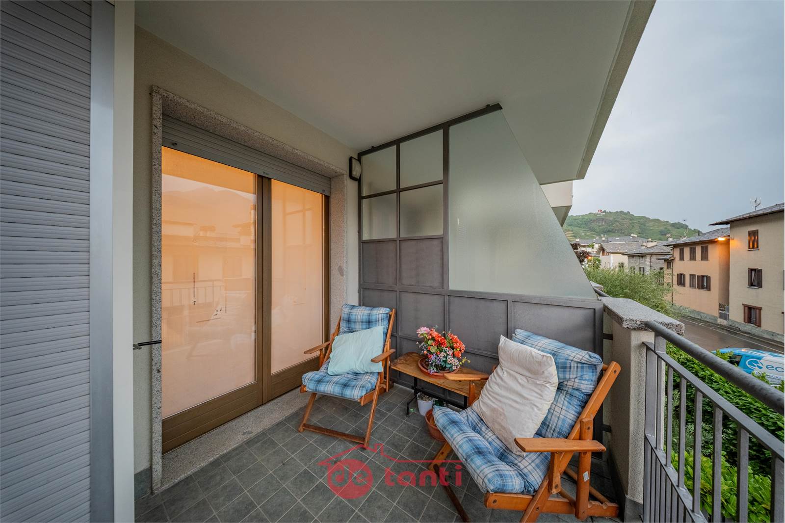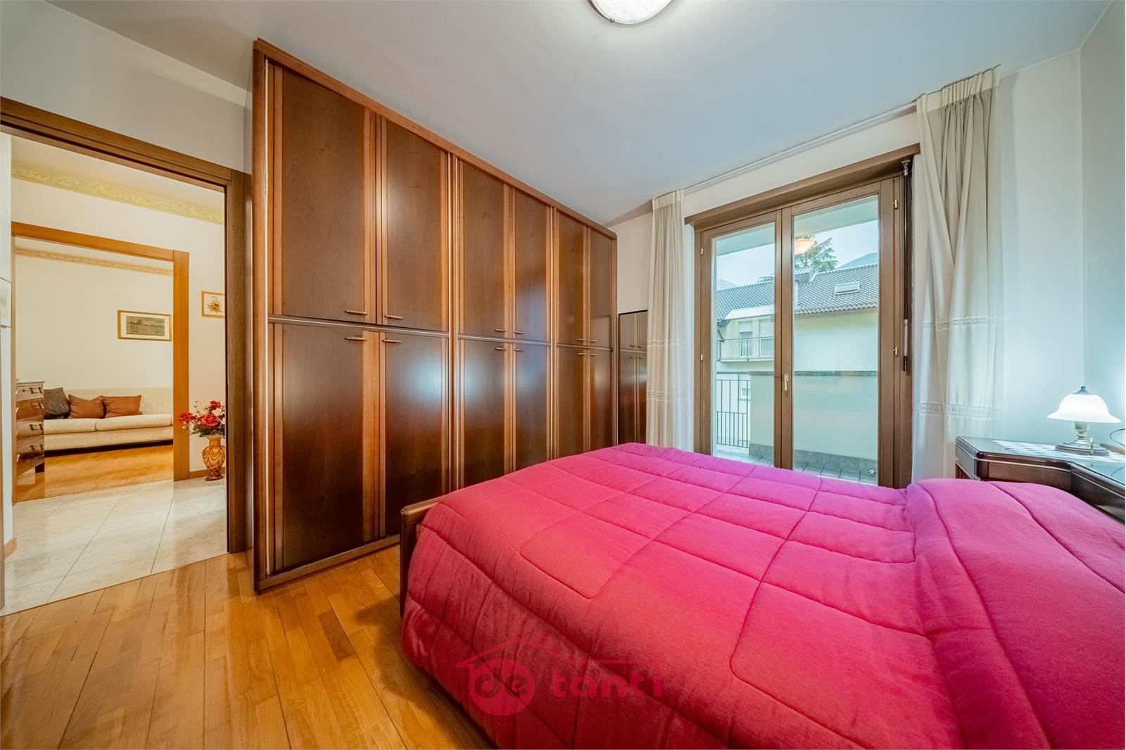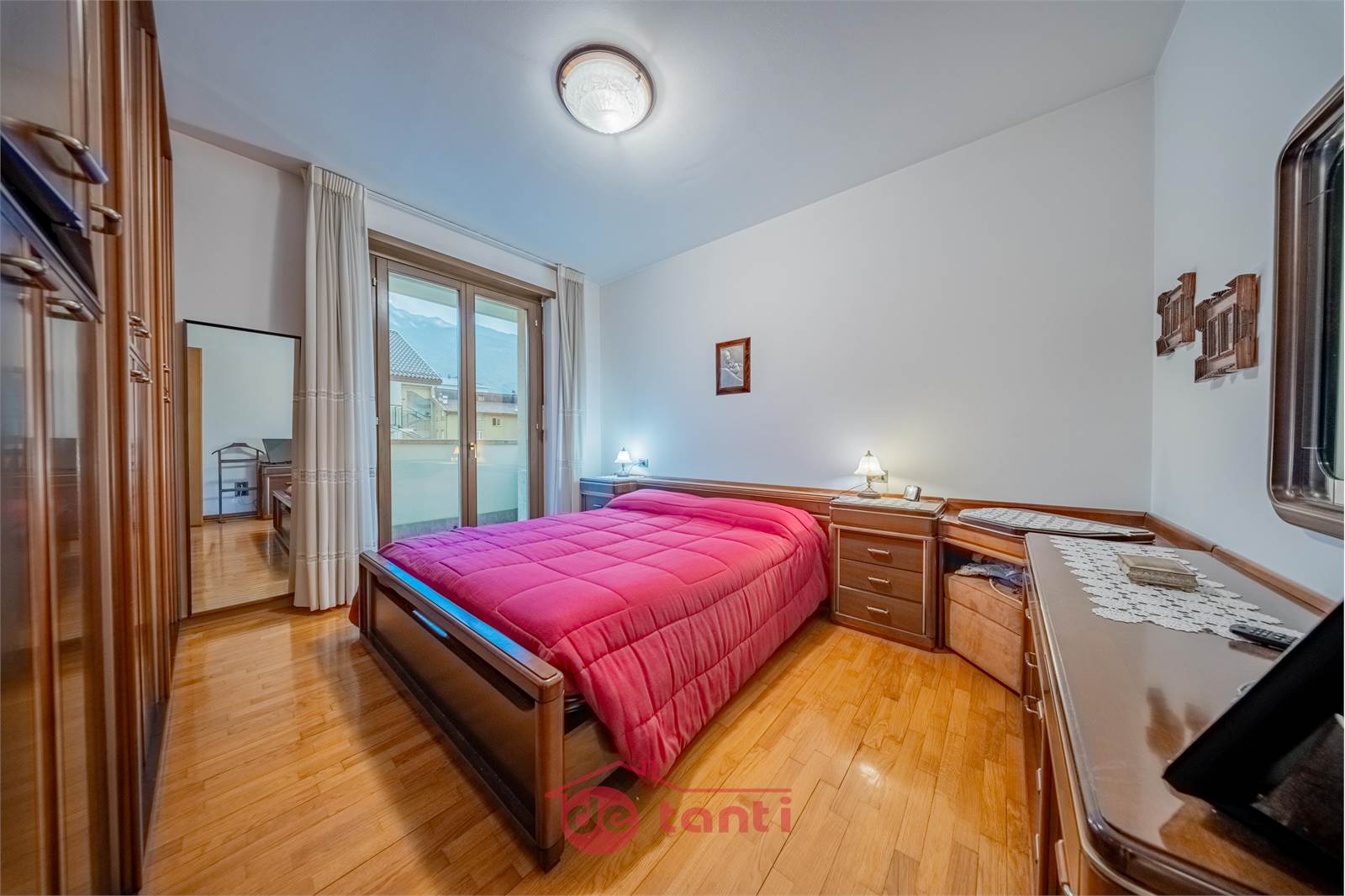 E poi il disimpegno ti conduce verso la parte più intima: due camere matrimoniali, una con bagno en suite, l’altra ancora più grande, perfetta per chi ama gli spazi veri. Entrambe si affacciano su un secondo terrazzo, ampio, silenzioso, dove l’aria di Sondrio ti accompagna anche nei momenti di relax. Tra le due, un bagno padronale con vasca, immacolato, spazioso, pronto a diventare il tuo piccolo centro benessere quotidiano.