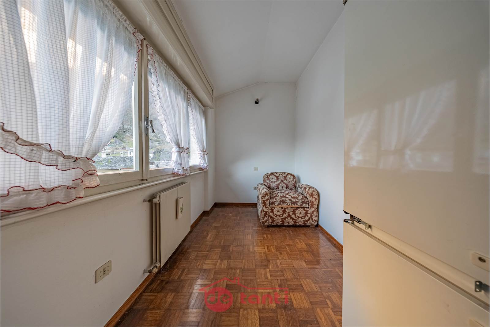 La distribuzione interna è classica e razionale, con due camere matrimoniali di dimensioni regolari, un bagno, una cucina separata e un soggiorno che garantiscono spazi chiari e versatili, senza necessità di interventi strutturali invasivi per renderli appetibili sul mercato delle locazioni. Il balconcino, con affaccio su Villa di Chiavenna, aggiunge un elemento di respiro e luce che migliora la qualità complessiva dell’abitare e rappresenta un dettaglio apprezzato anche in ottica di affitto, perché aumenta la percezione di comfort senza incidere in modo significativo sui costi di gestione. È un immobile che permette di fare conti semplici, di stimare con facilità tempi e modalità di messa a reddito e di ridurre quelle incertezze che spesso accompagnano investimenti più complessi o meno focalizzati.